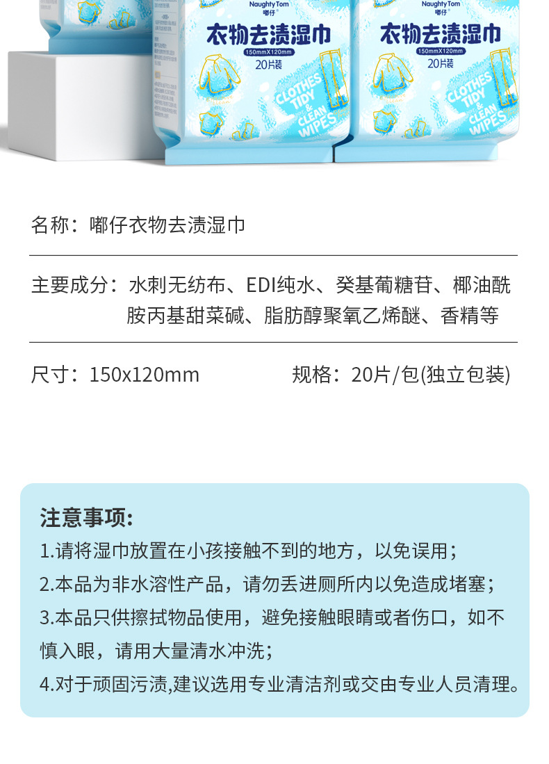 羽绒服湿巾衣物去渍清洁免洗湿纸巾去油污便携免洗小白鞋清洁湿巾