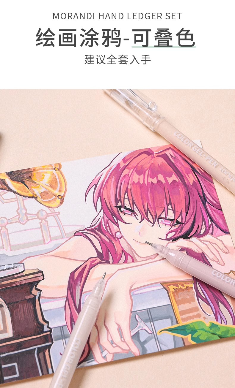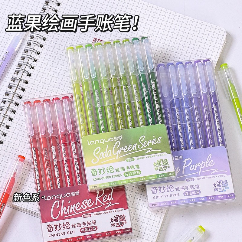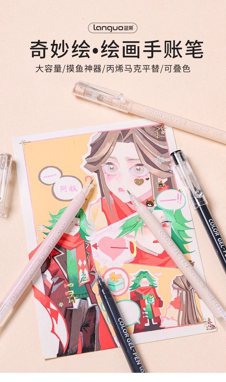 蓝果全新手账笔 0.6mm彩色美术填色叠色丙烯中性笔画笔现货批发
