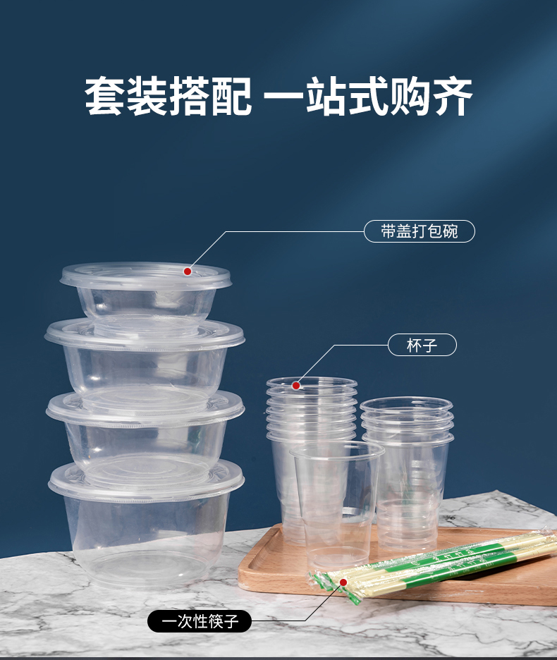 家庭用および業務用の使い捨て食器セット、厚いプラスチックの丸いファーストフードボックス、ランチボックス、包装箱、Hengyun