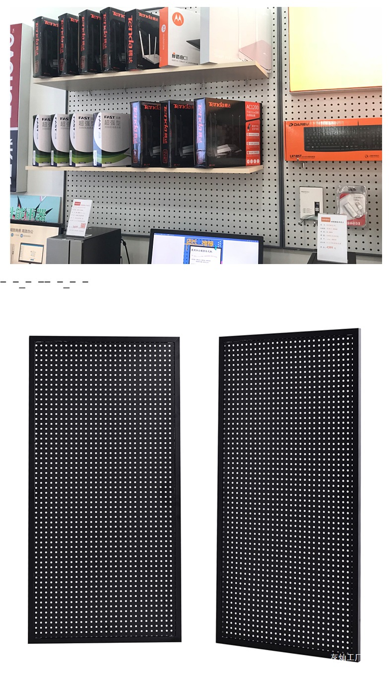 ボーダー付きホールボードハードウェアツールディスプレイラック、携帯電話アクセサリー吊り下げ靴下ジュエリーラック、壁掛けジュエリー収納ラック