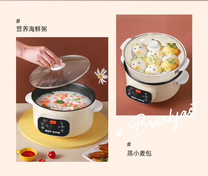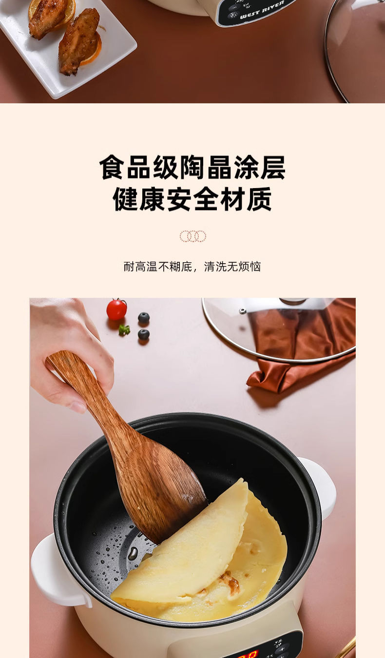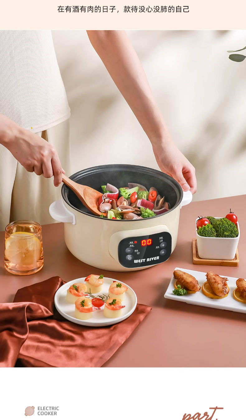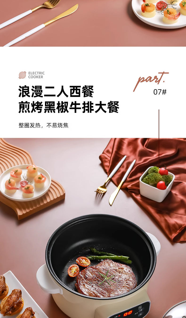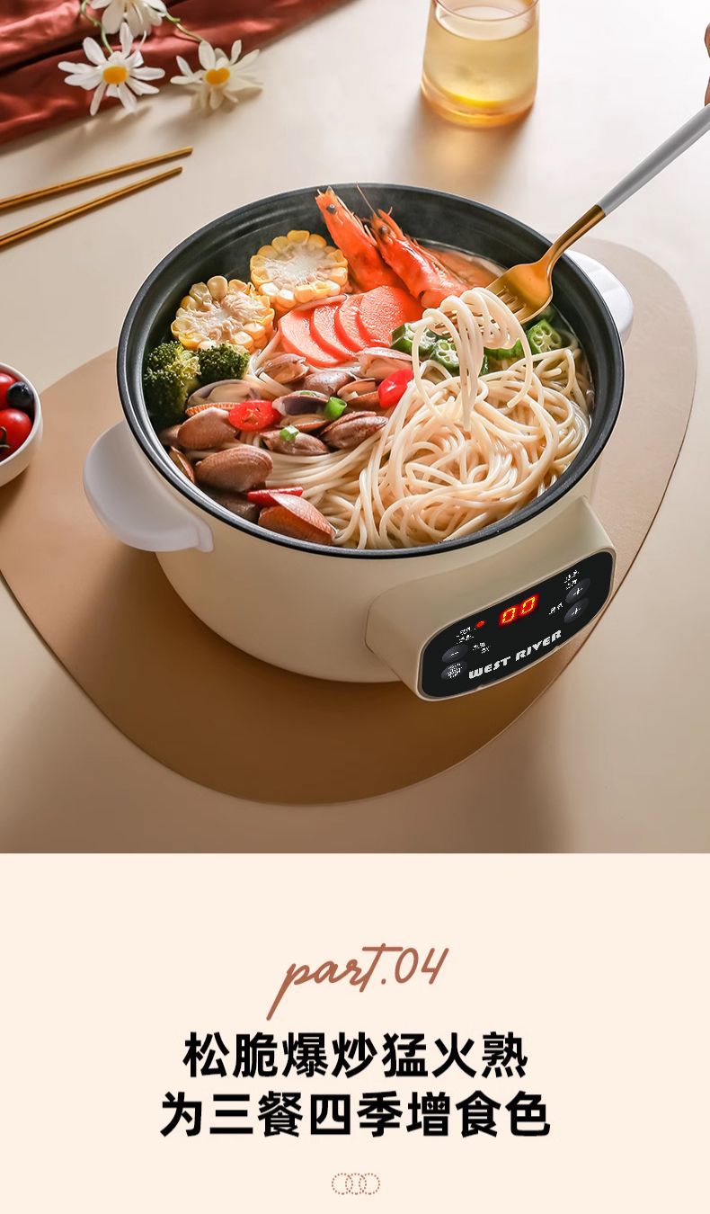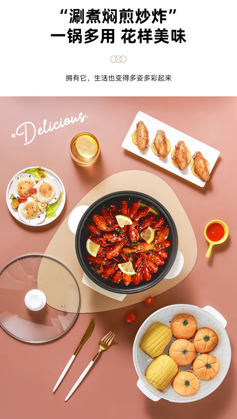 ドイツ電気中華鍋、家庭用電気調理鍋、多機能電気炒め物・蒸し物オールインワン鍋、電気鍋、大容量ノンスティックヨーロピアンクリア