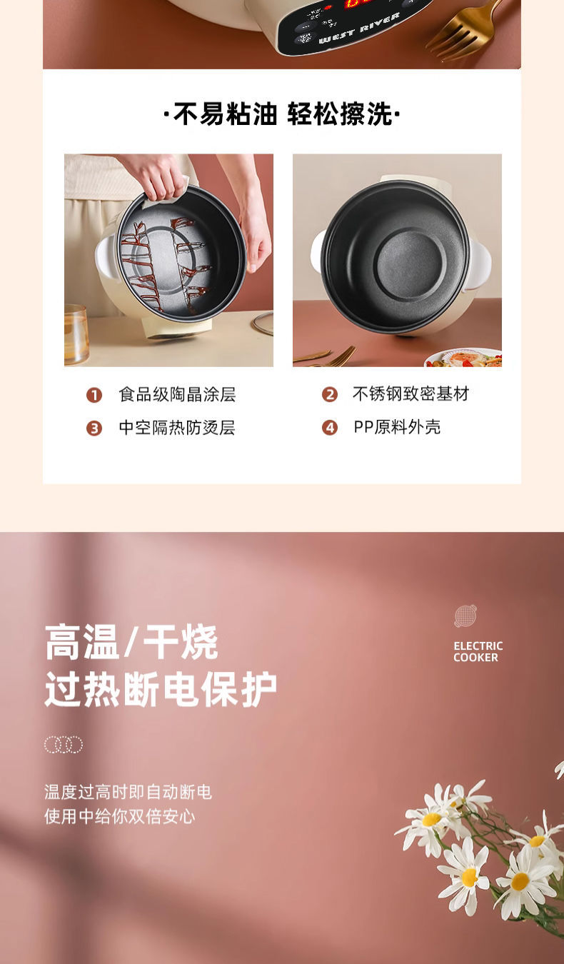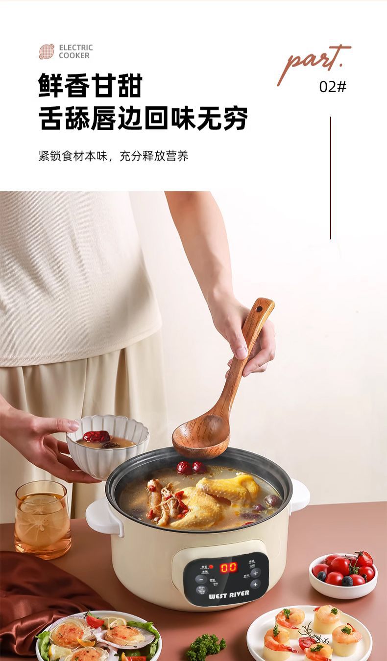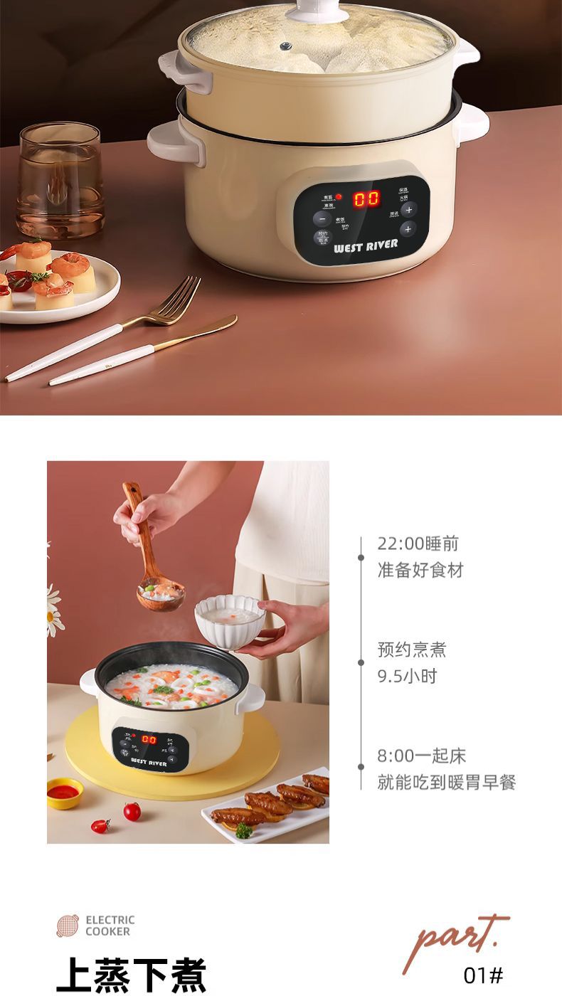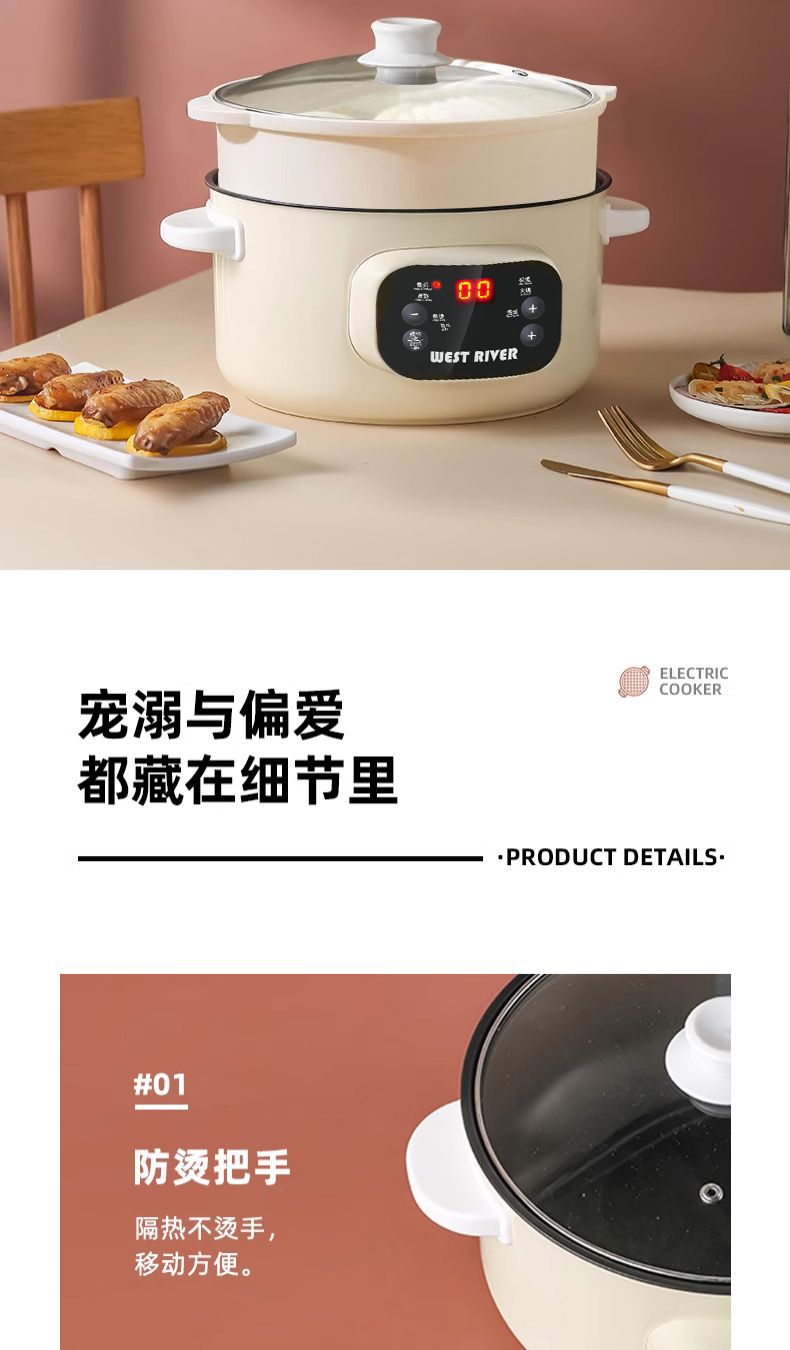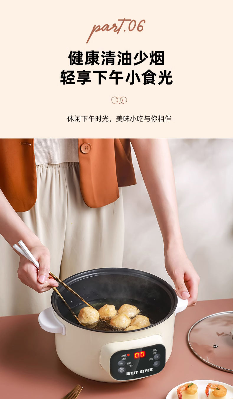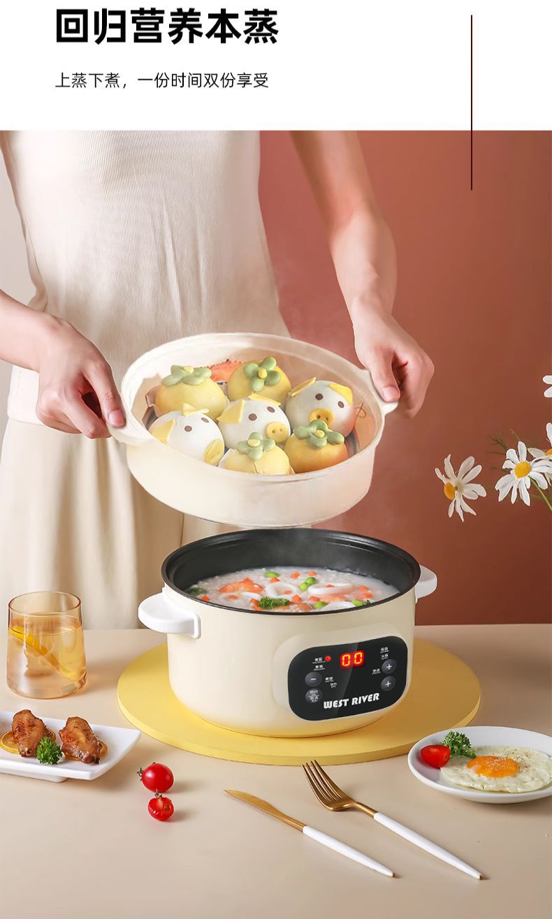 ドイツ電気中華鍋、家庭用電気調理鍋、多機能電気炒め物・蒸し物オールインワン鍋、電気鍋、大容量ノンスティックヨーロピアンクリア