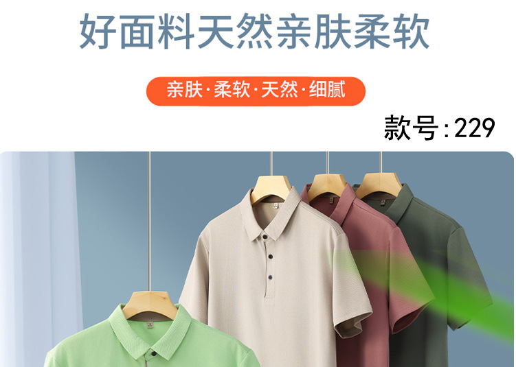 メンズアイスシルクシームレス薄手クールライト高級半袖ビジネスカジュアルスリムラペルTシャツポロシャツ夏