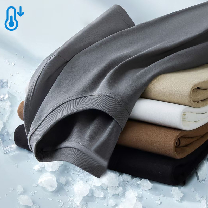メンズトレンディなメンズクールコットン半袖アイスフィールソリッドカラーメンズTシャツラウンドネック半袖夏多用途薄手カジュアルボトリングシャツ