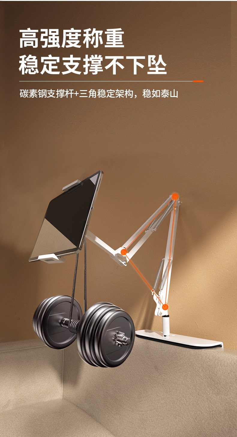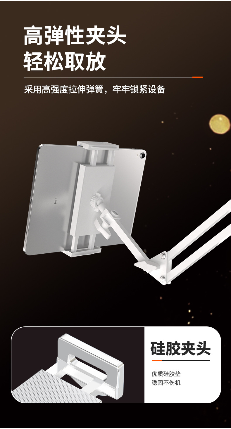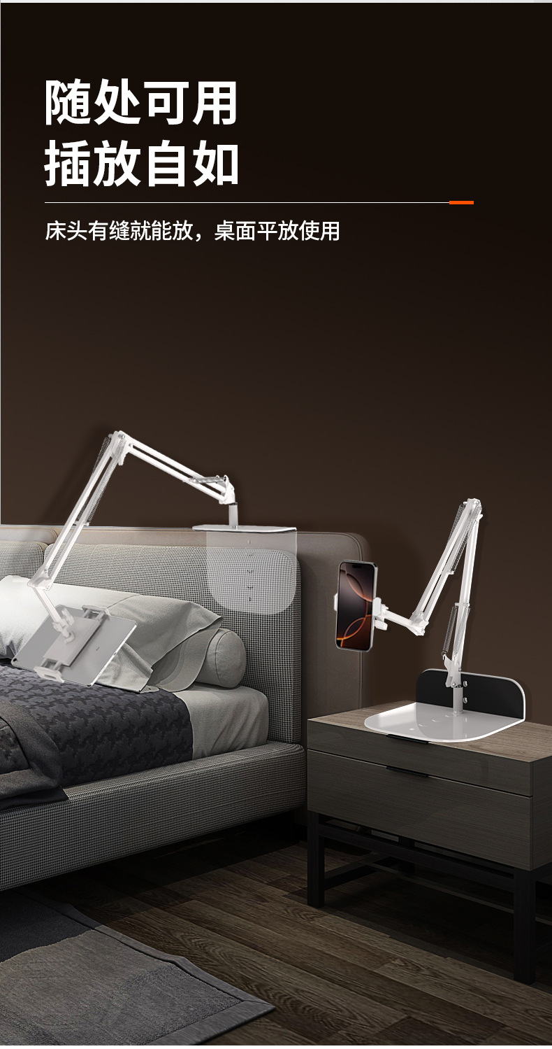 亚马逊桌面悬臂支架金属可伸缩直播手机支架懒人追剧平板支架床头