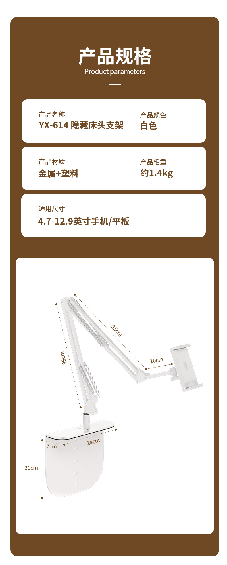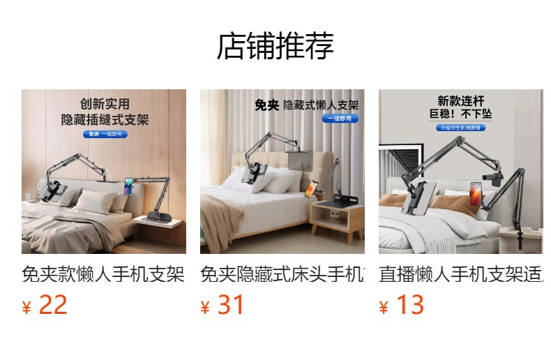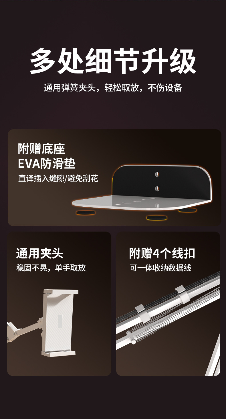 亚马逊桌面悬臂支架金属可伸缩直播手机支架懒人追剧平板支架床头