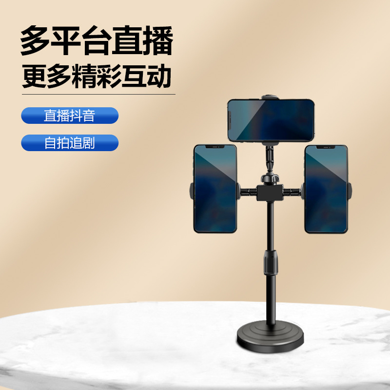 三機の携帯電話の支えのメーカーの直接販売の卸売りのキャスターは多機能でデスクトップの伸縮できる生放送の支えを撮影します。