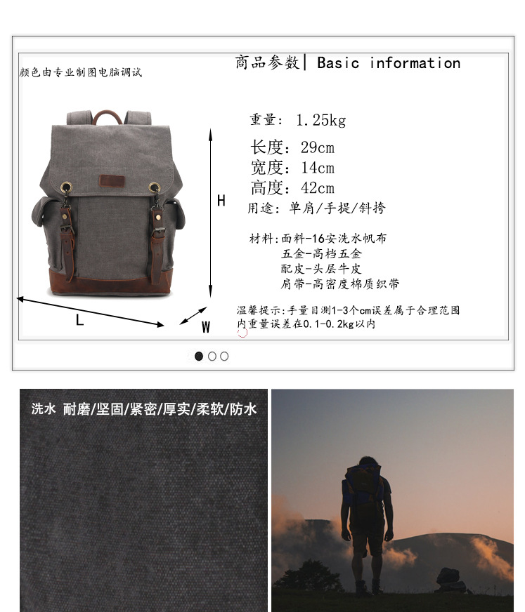 ヨーロッパとアメリカのアウトドアバックパックメンズトラベル大容量キャンバスレザー登山バッグ多機能レトロ学生スクールバッグ