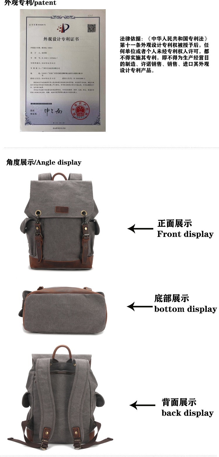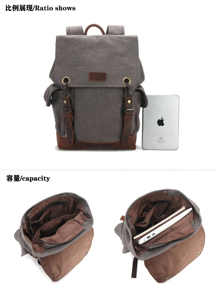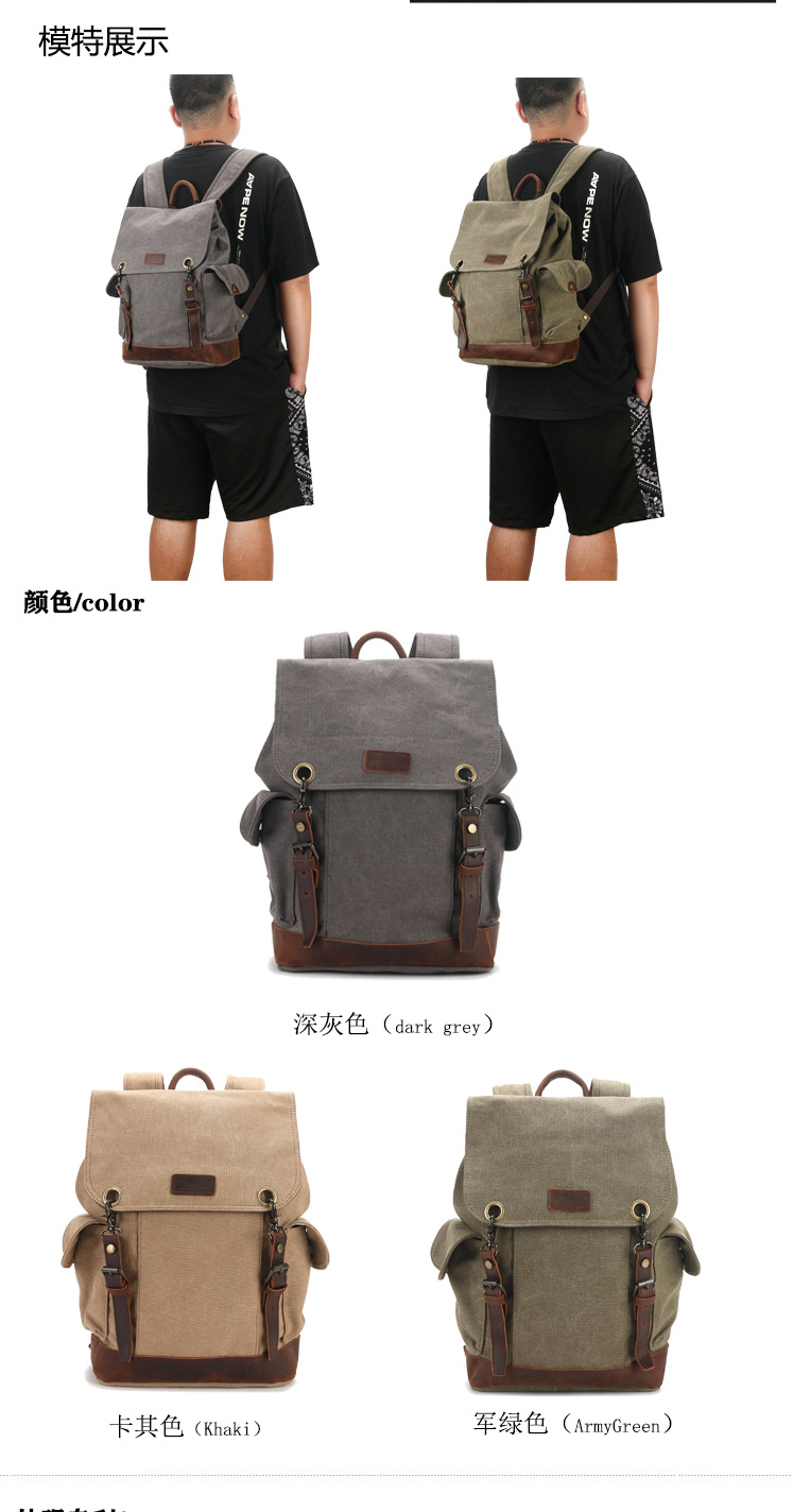レトロキャンバスバックパックニュートラルカレッジスタイルスクールバッグ純綿キャンバスと第一層クレイジーホース牛革スクールバッグ