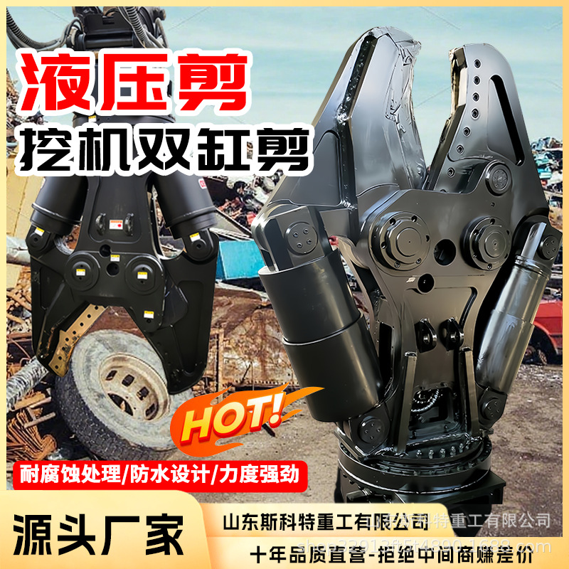 掘削機のダブルシリンダーの油圧は鷹の口を切って車を切って鉄筋のスクラップの家屋の廃車の回転式の大きな力を切ります。