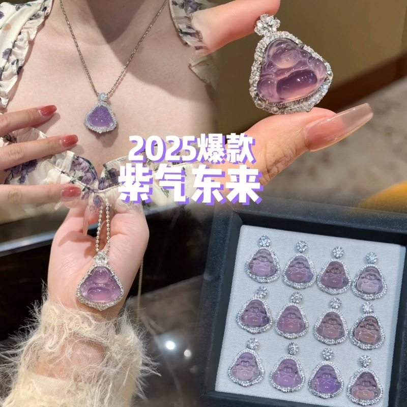 Ziqidonglai スマイリーフェイス仏陀ペンダント紫カルセドニー s925 シルバー人気の富を引き寄せる気質美白多用途ギフト女の子のための