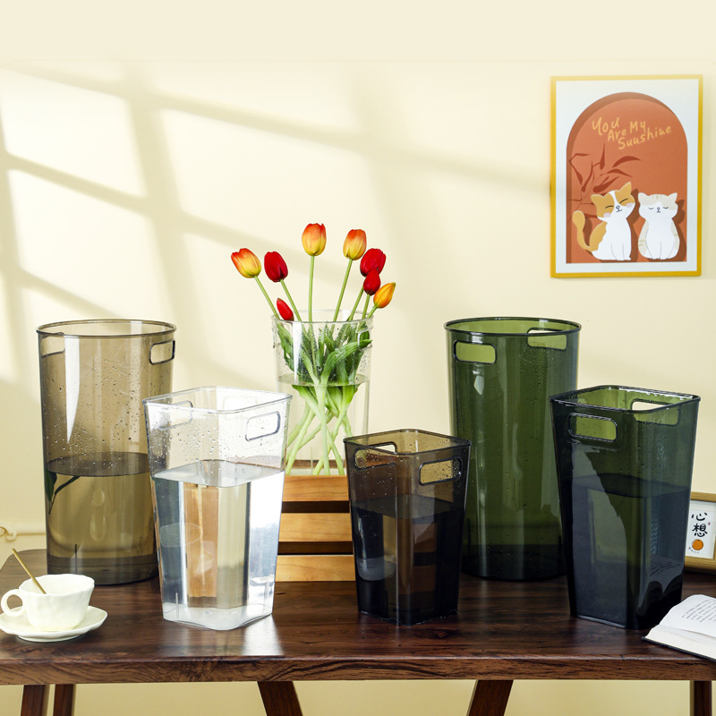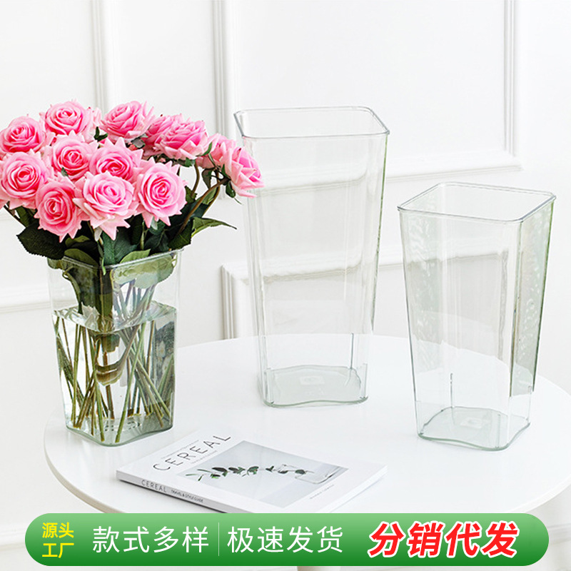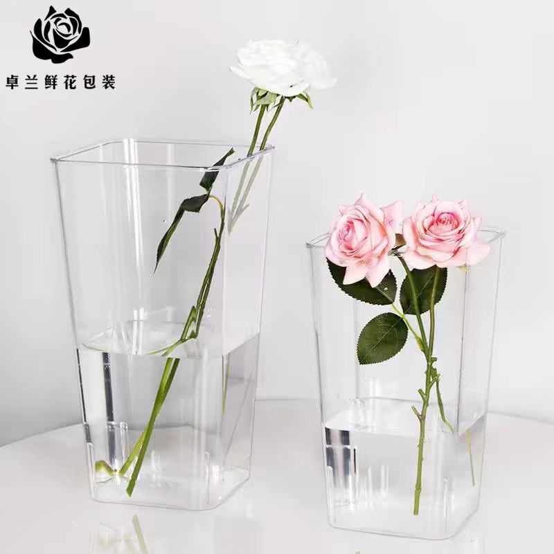 アクリル覚醒花桶家庭用透明プラスチック養花花大角型花束花屋生け花花瓶花桶