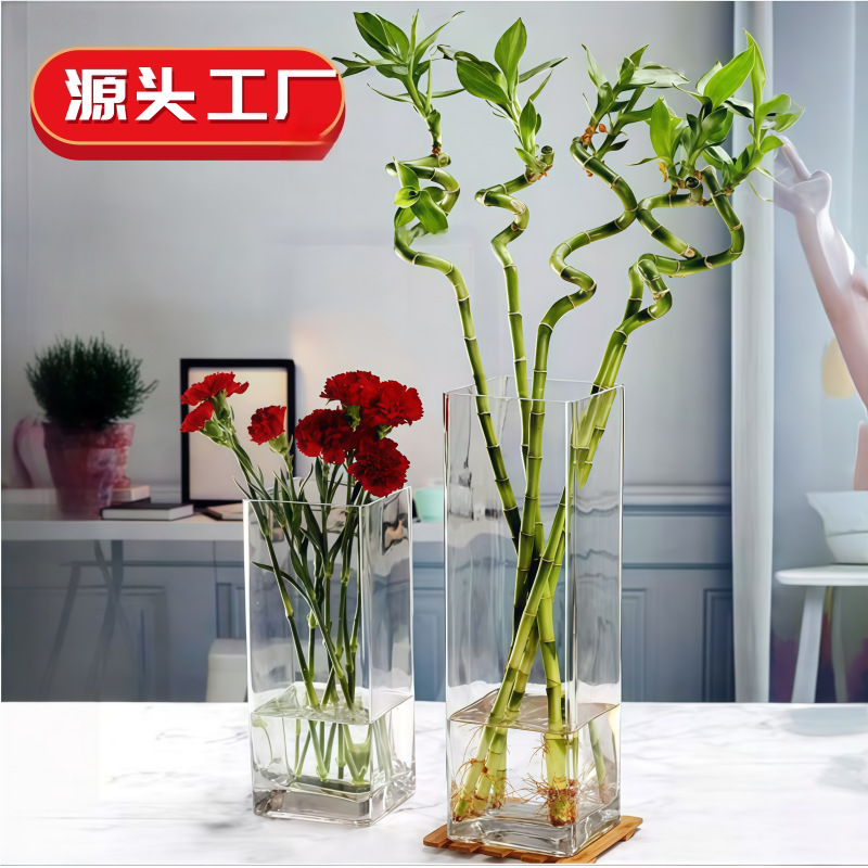 亚克力醒花桶家用透明塑料养花鲜花大号方形花束花店插花花瓶花桶