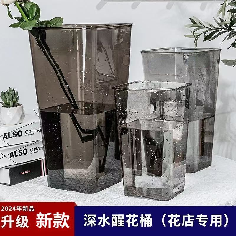 高档醒花养花桶花店橱窗插花桶家用方形圆形塑料花桶醒花桶深水
