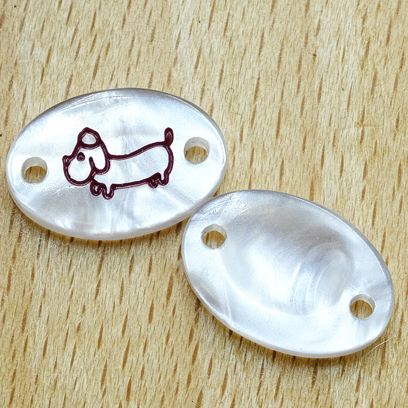 椭圆字母印花标牌扣服装两眼装饰纽扣厂家直销时尚树脂商标纽扣
