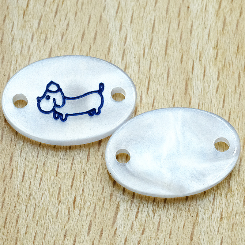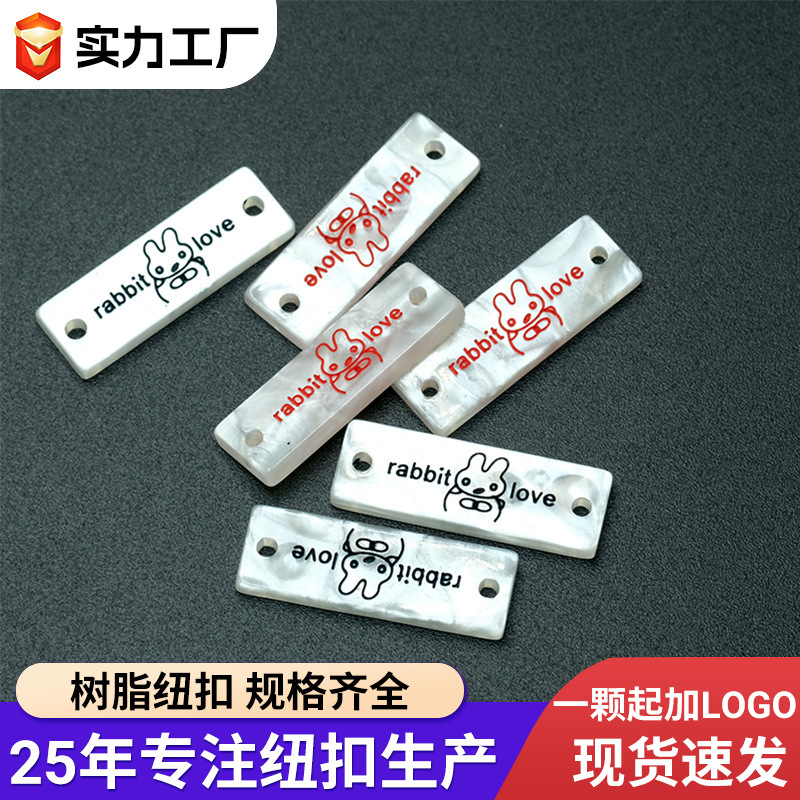 仿贝壳标牌字母印花树脂纽扣异形吊牌扣服装辅料单双孔衣标装饰扣