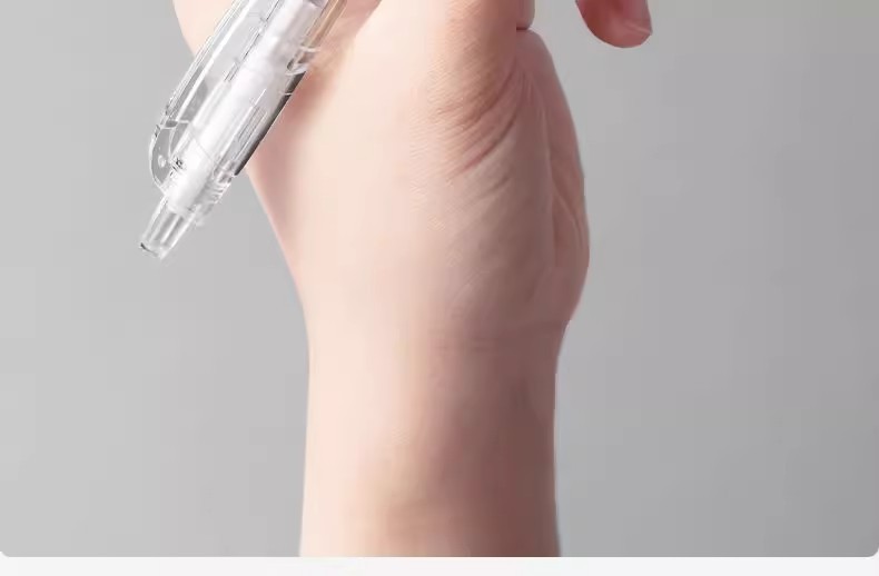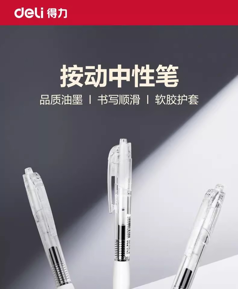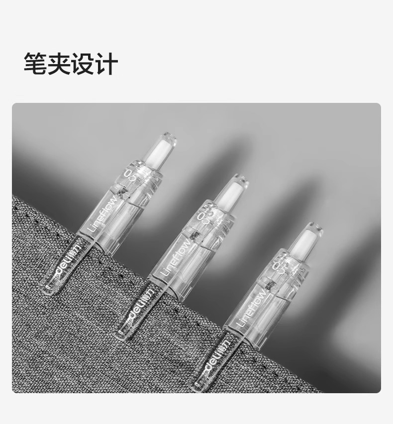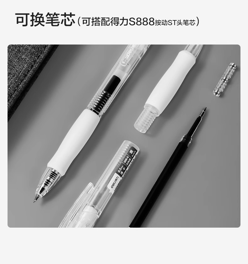 得力刷题笔双核芯速干ST头透明笔杆按动式双珠顺滑学生考试中性笔