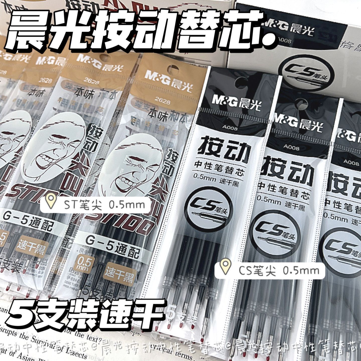 晨光ST笔头按动笔笔芯黑色0.5按动刷题笔笔芯cs头速干中性笔黑笔