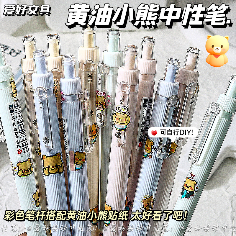爱好马克龙中性笔条纹防滑舒适按动黑色学习写字笔全针管笔