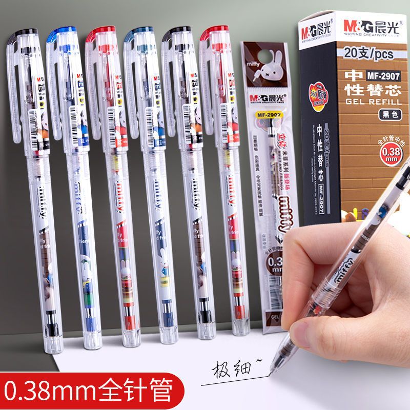 晨光MF2018中性笔0.38笔芯全黑色盒装红墨蓝色彩色水笔替芯细头笔