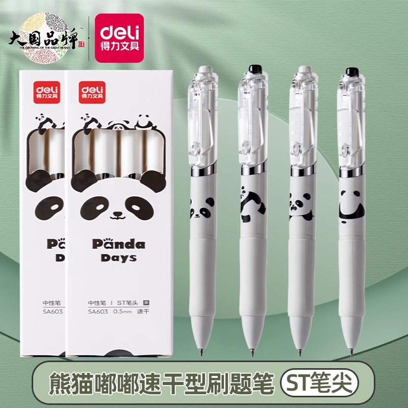 得力熊猫嘟嘟按动中性笔可爱ST笔头软握笔卡通0.5学生用速干刷题