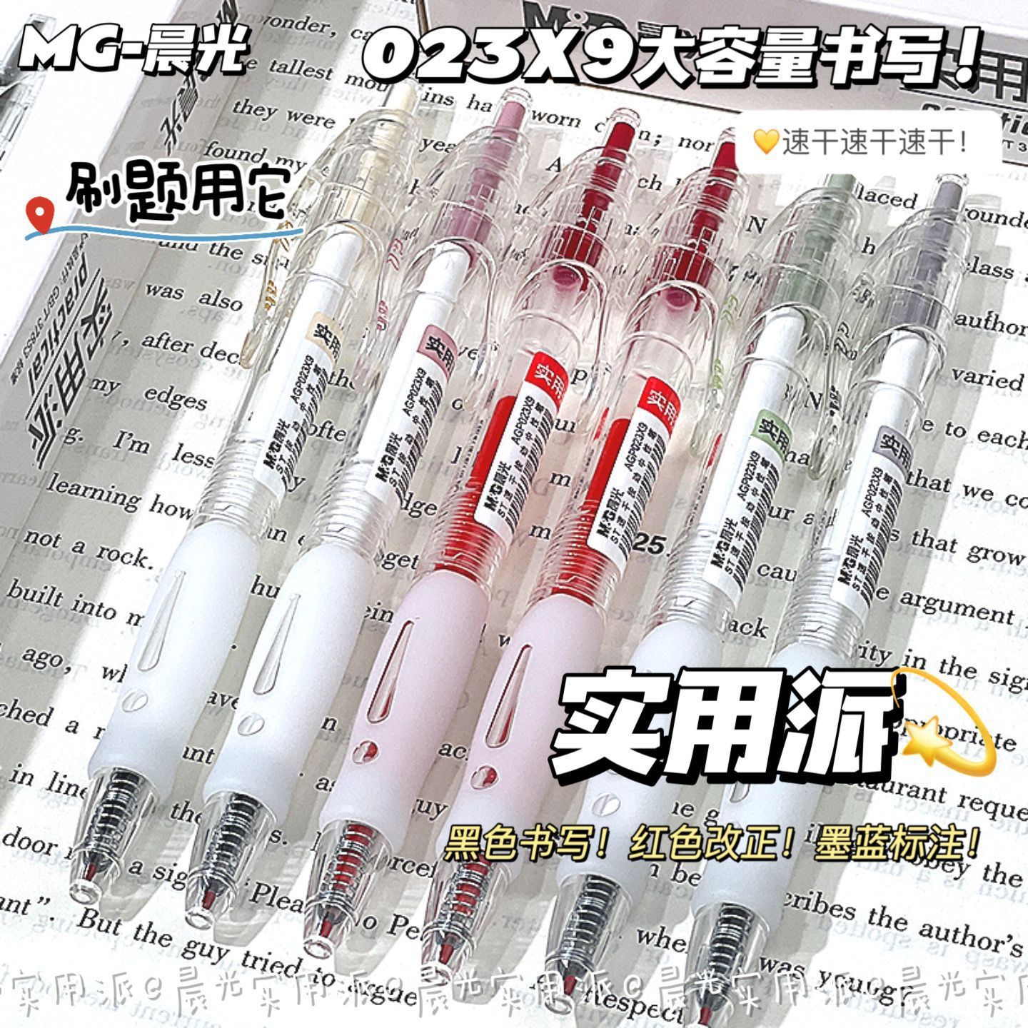 晨光实用派按动中性笔ins简约高颜值速干红笔0.5黑色学生用笔速干