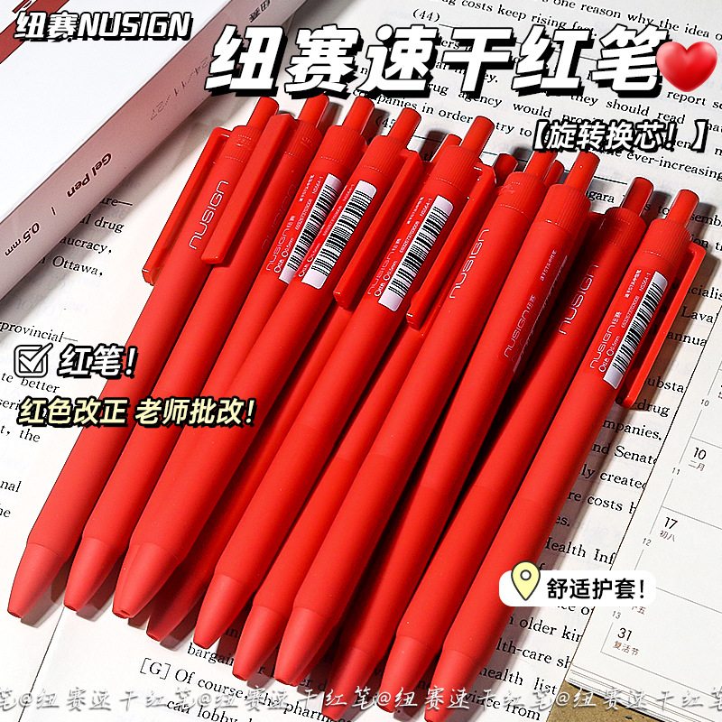 得力纽赛按动速干红笔简约风老师批改学生标注重点0.5顺滑中性笔