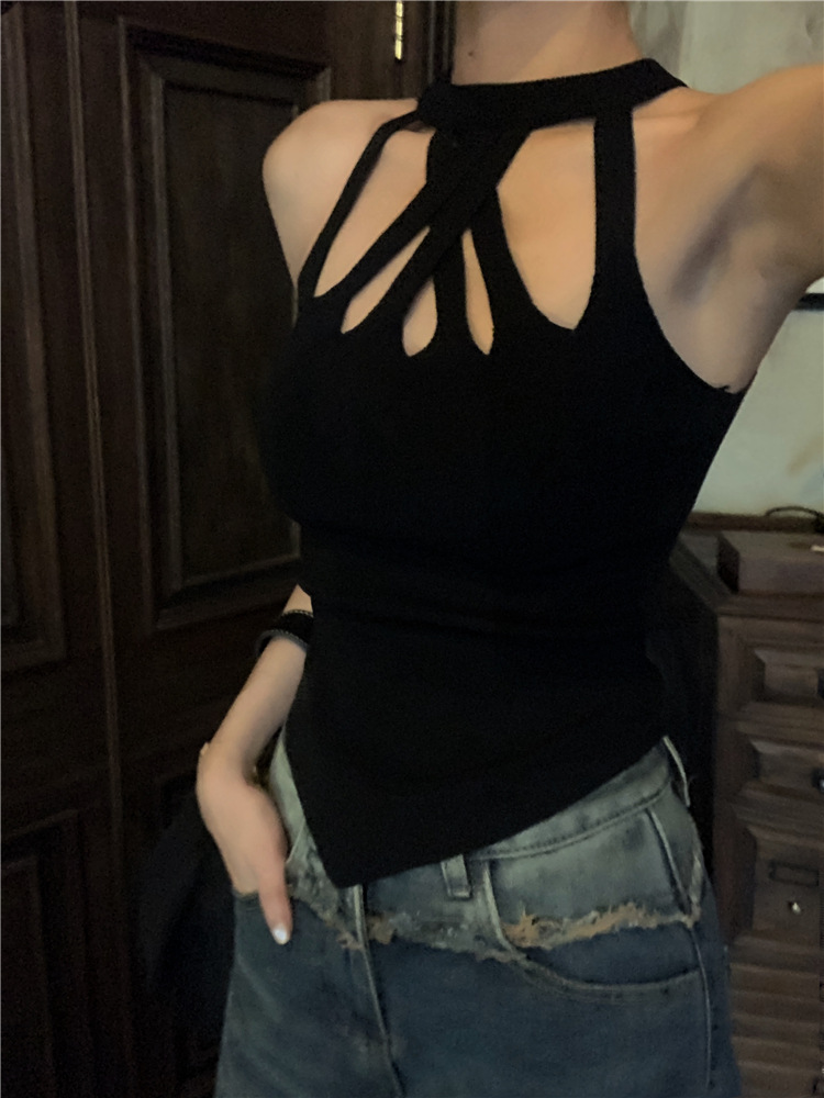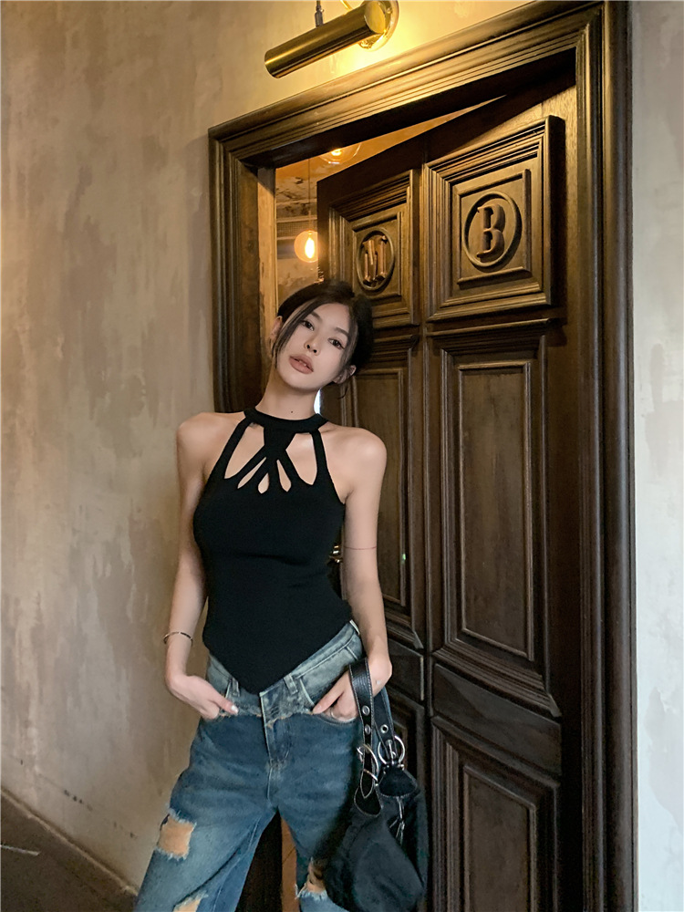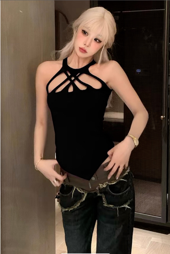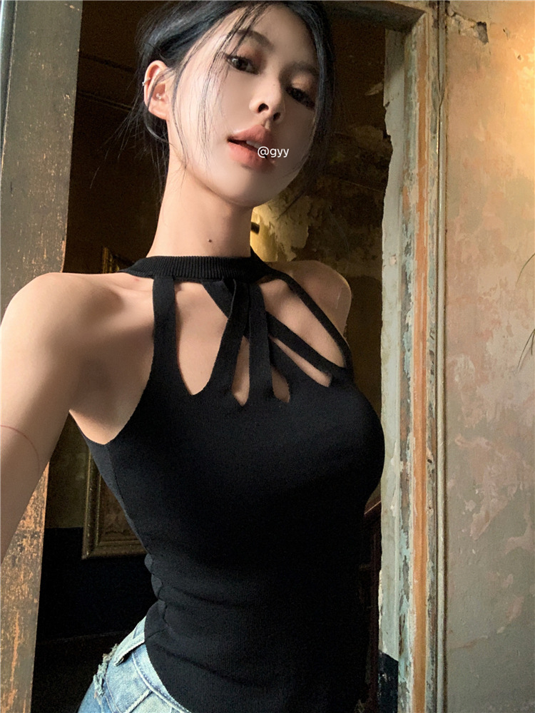 キャミソールレディースアウターセクシーニッチスイートホットガールチューブトップタイ風ホルターネック美しいクロスサマー中空