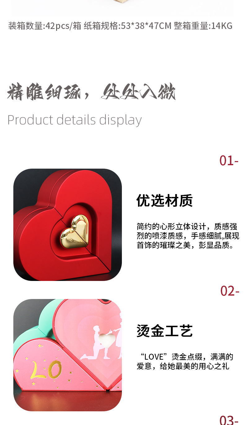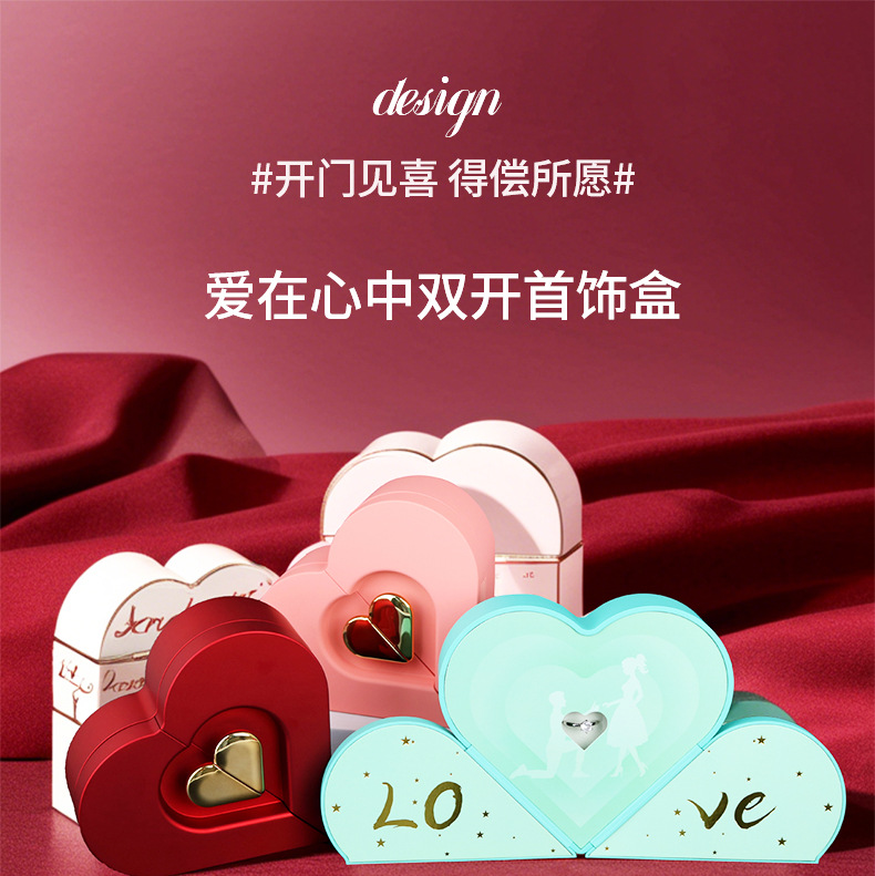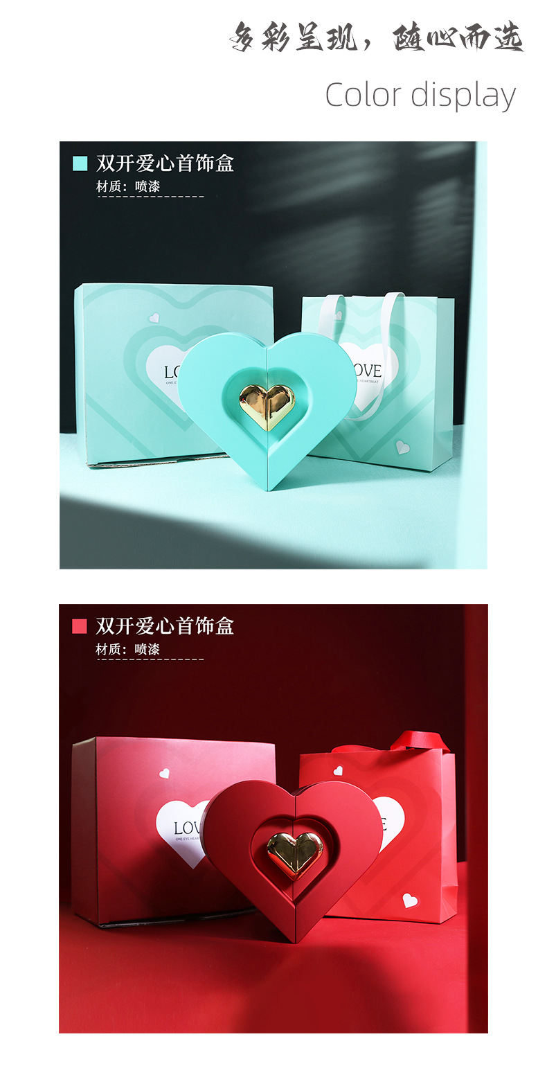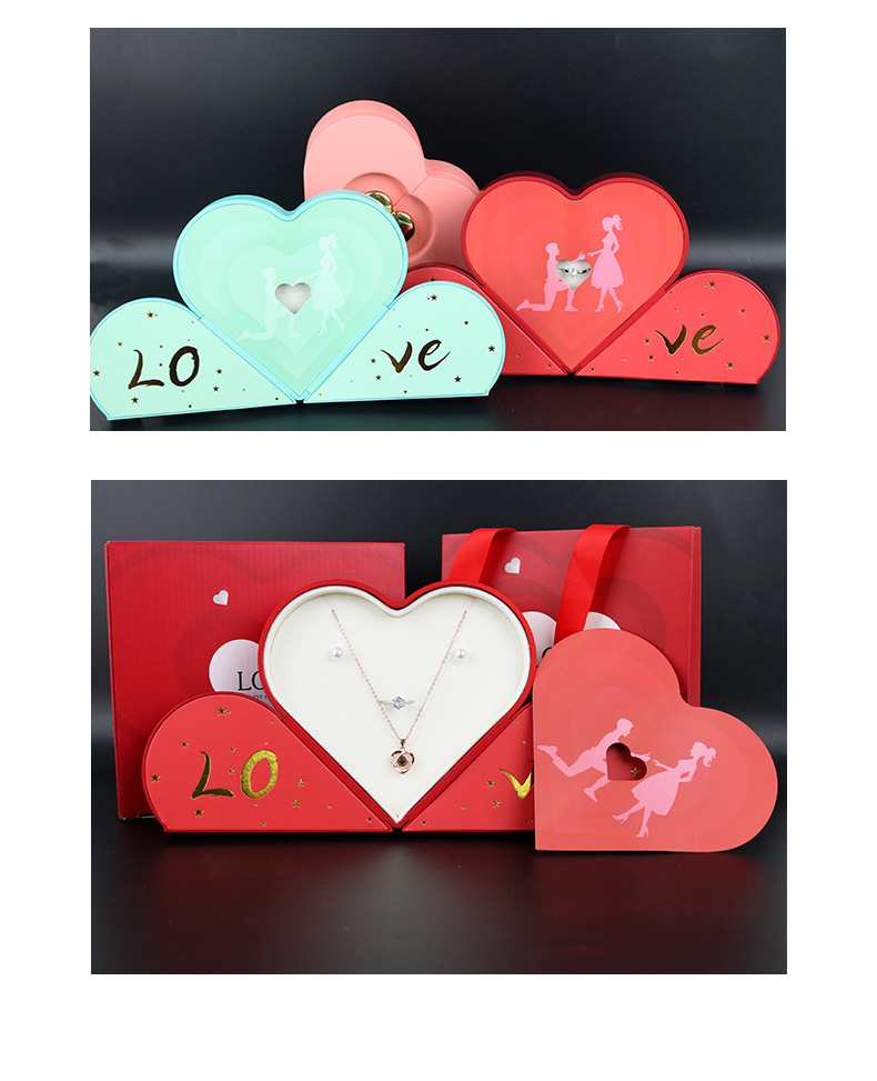 クロスボーダー愛のハート型包装ジュエリーボックスバレンタインデーダブルドア中空リングネックレスギフトボックス卸売