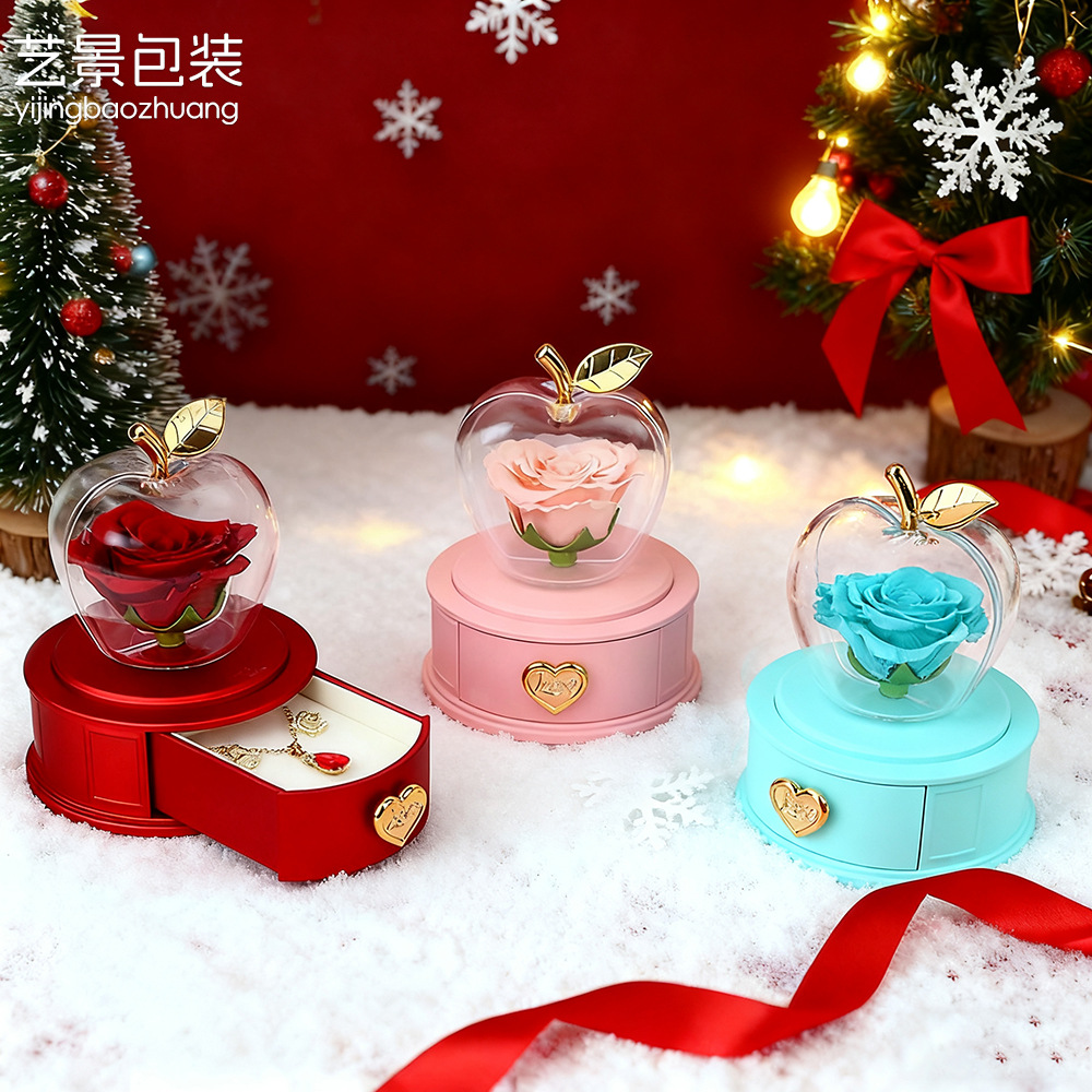 跨境苹果抽屉盒玫瑰永生花圣诞礼盒情人节平安夜亚克力项链戒指盒