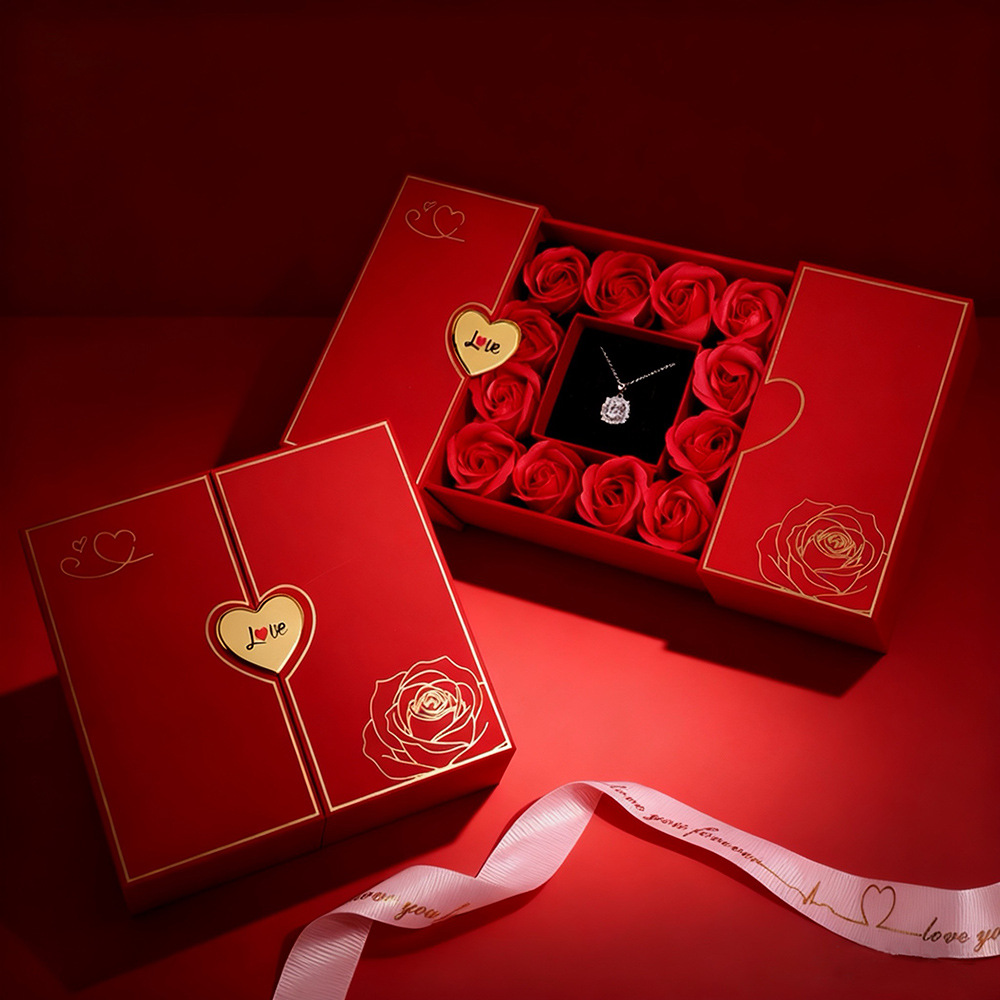 両開きハート型ジュエリーボックス、クロスボーダーバレンタインデーローズギフトボックス、在庫あり卸売