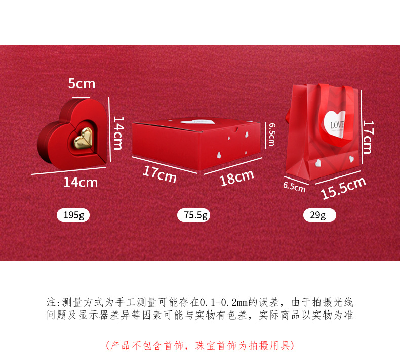 双开门婚礼婚庆首饰展示盒 高端喜庆时尚红色首饰盒轻奢高级感