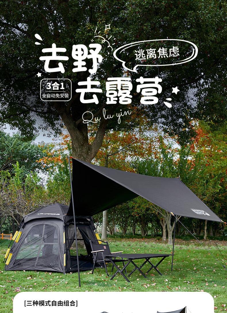 Coshan アウトドア キャノピー テント ツーインワン 全自動ビニール遮光テント 防雨防風 キャンプ T-05 Lサイズ