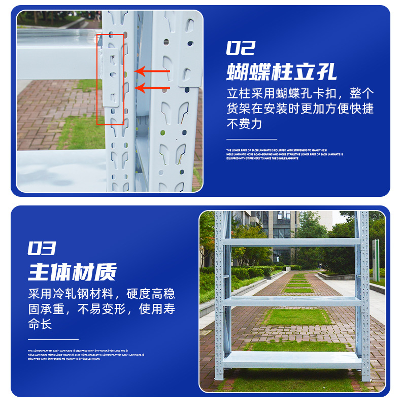 棚板アクセサリー、横梁、横バー、棚板、倉庫、保管、配送、収納棚、バタフライホールスチールフレーム