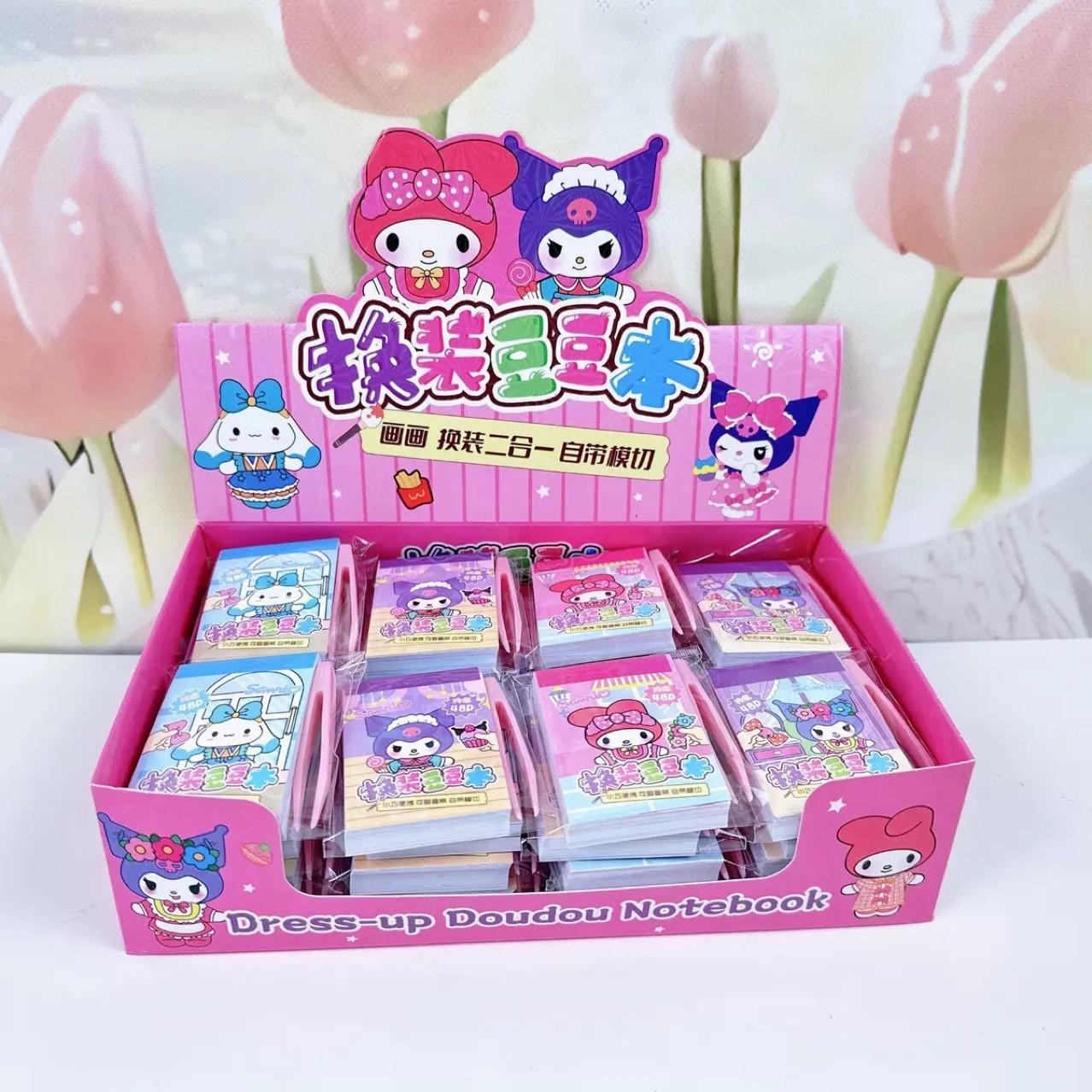 卡通迷你换装豆豆本换装涂色二合一素材贴纸本儿童DIY换装粘贴画