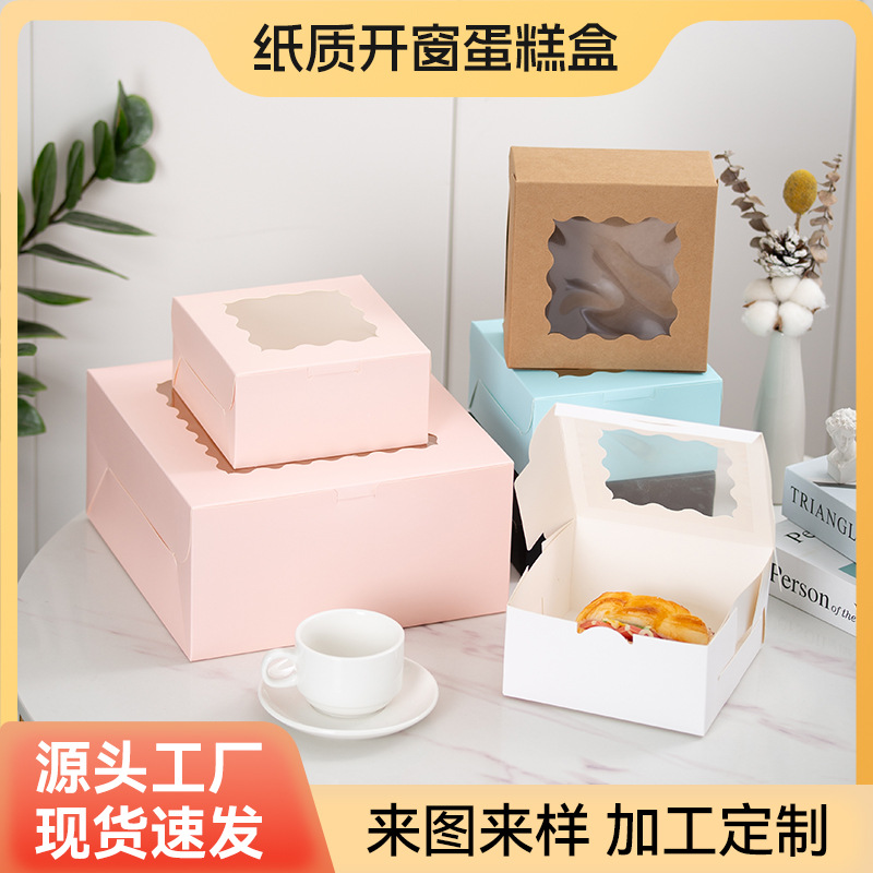 跨境热销6寸开窗蛋糕盒子包装盒迷你甜品切块烘焙法式西点打包盒