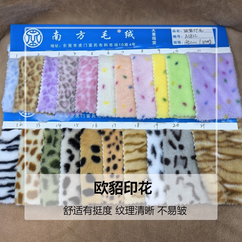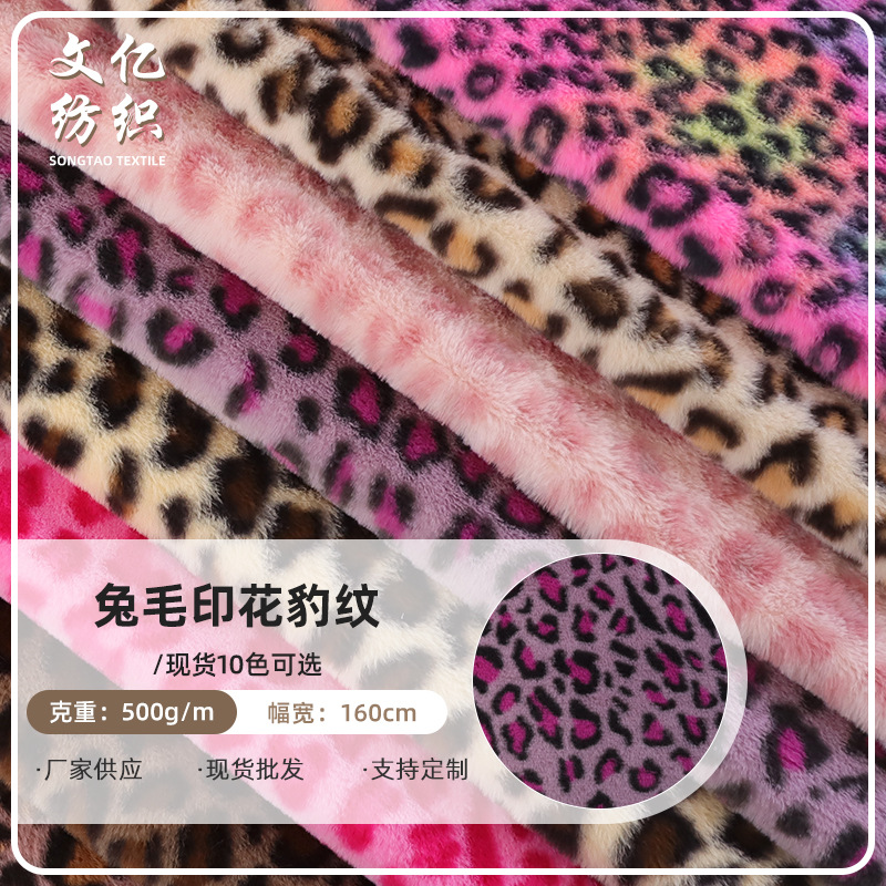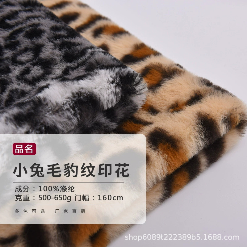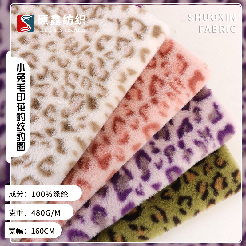 新款小兔毛印花豹纹豹圈毛绒布料 480克印花小兔毛 毛绒玩具童装