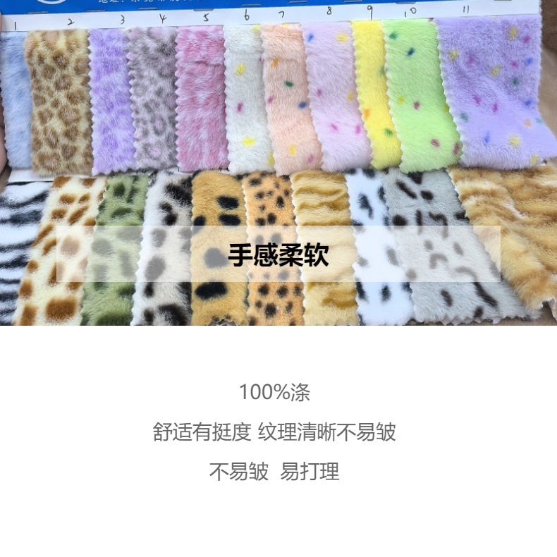 兔毛细条兔毛小爱心大豹纹豹点豹圈兔毛扎染刷花玩具鞋材服装面料