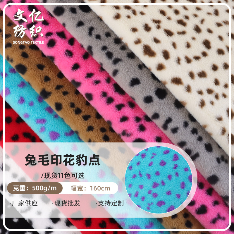 兔毛印花豹点 多色波点印花绒布面料 全涤秋冬家居服地毯靠垫布料