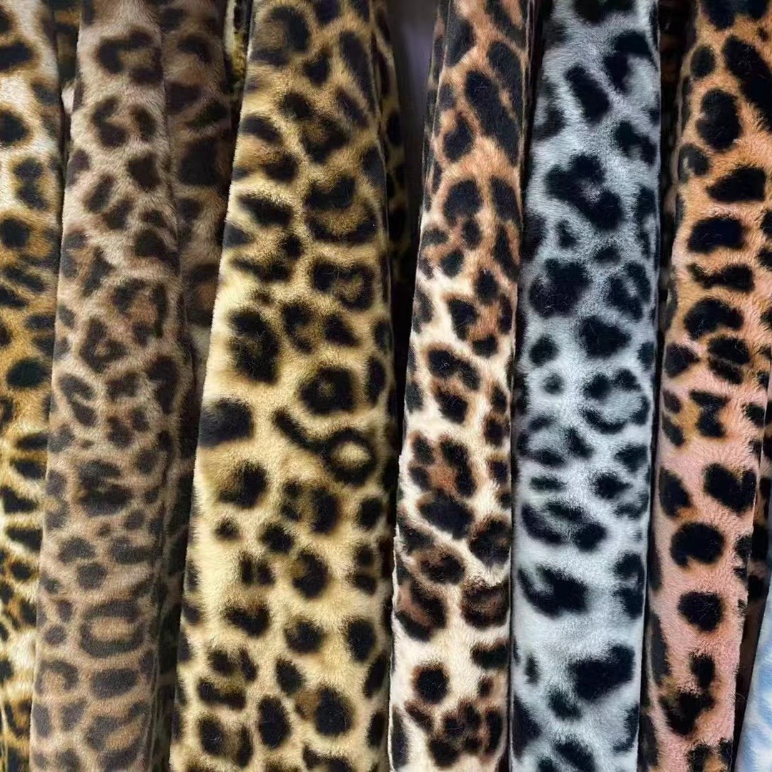 小兔毛印花豹纹毛绒布 仿兔印豹纹圈绒布 服装毛绒玩具兔毛绒布料