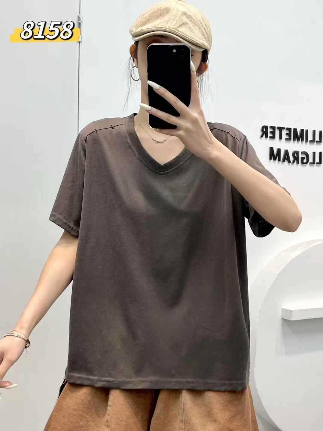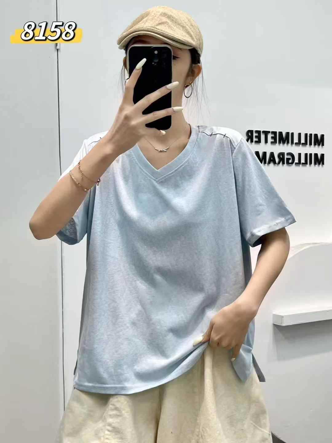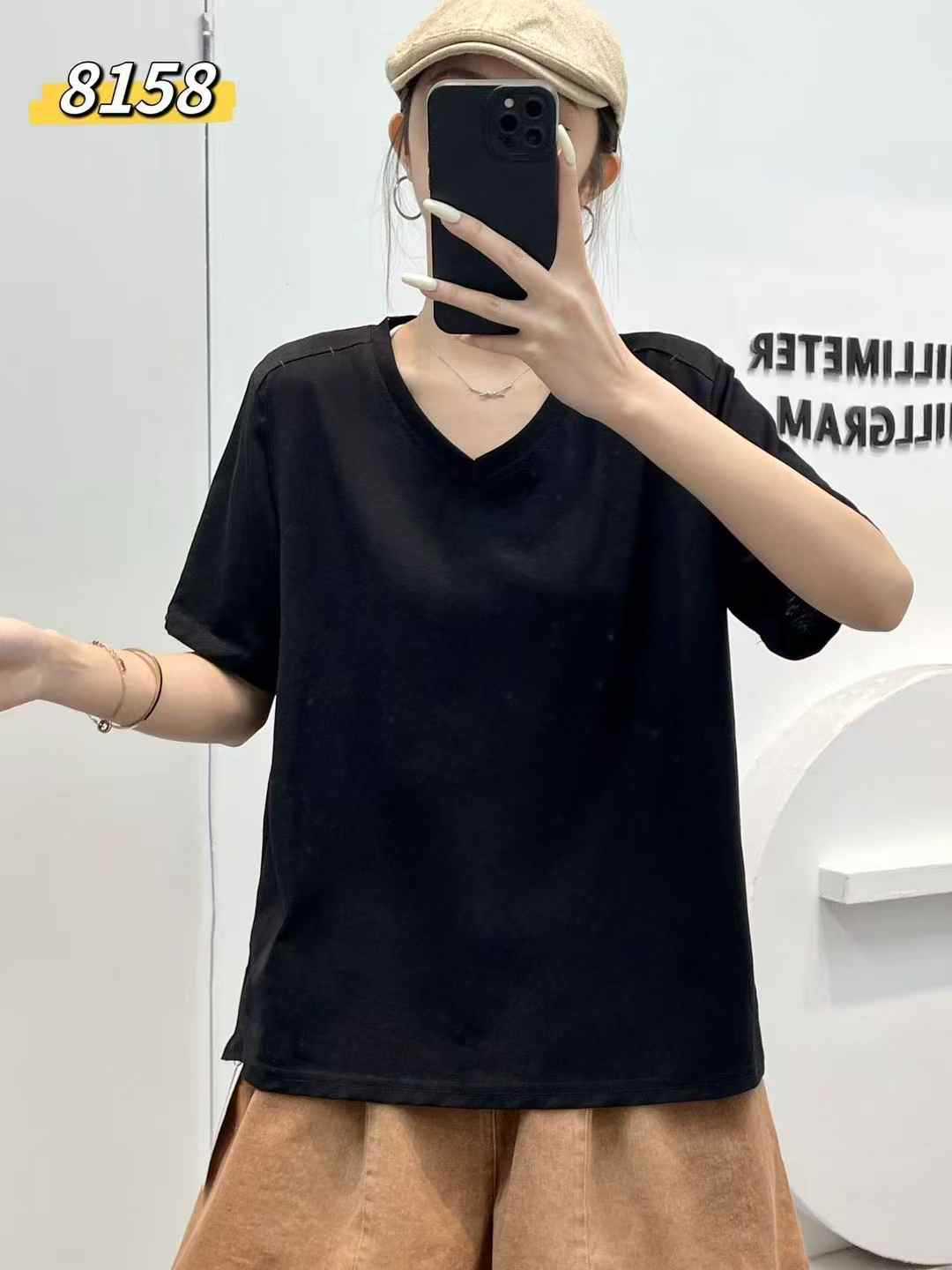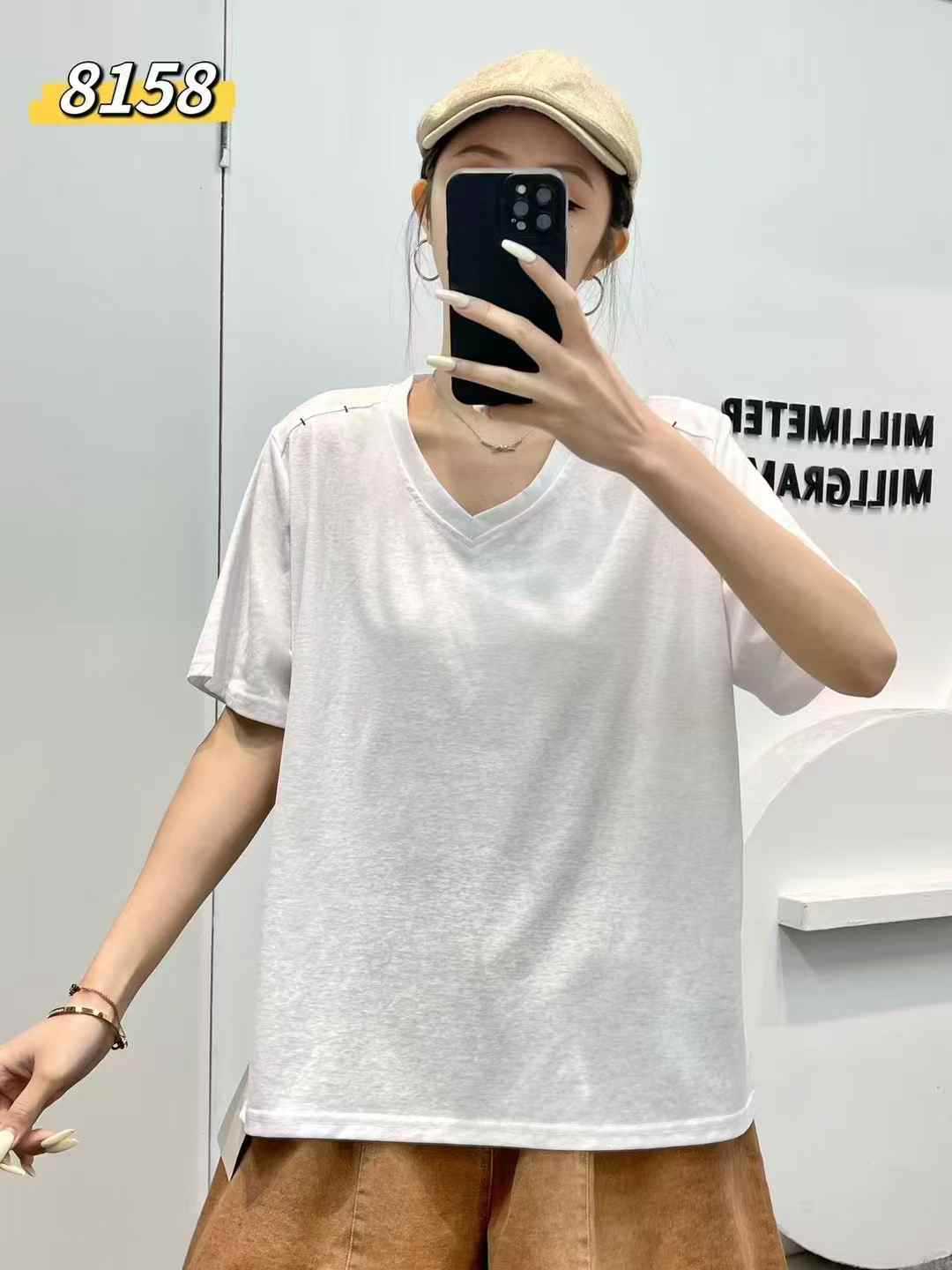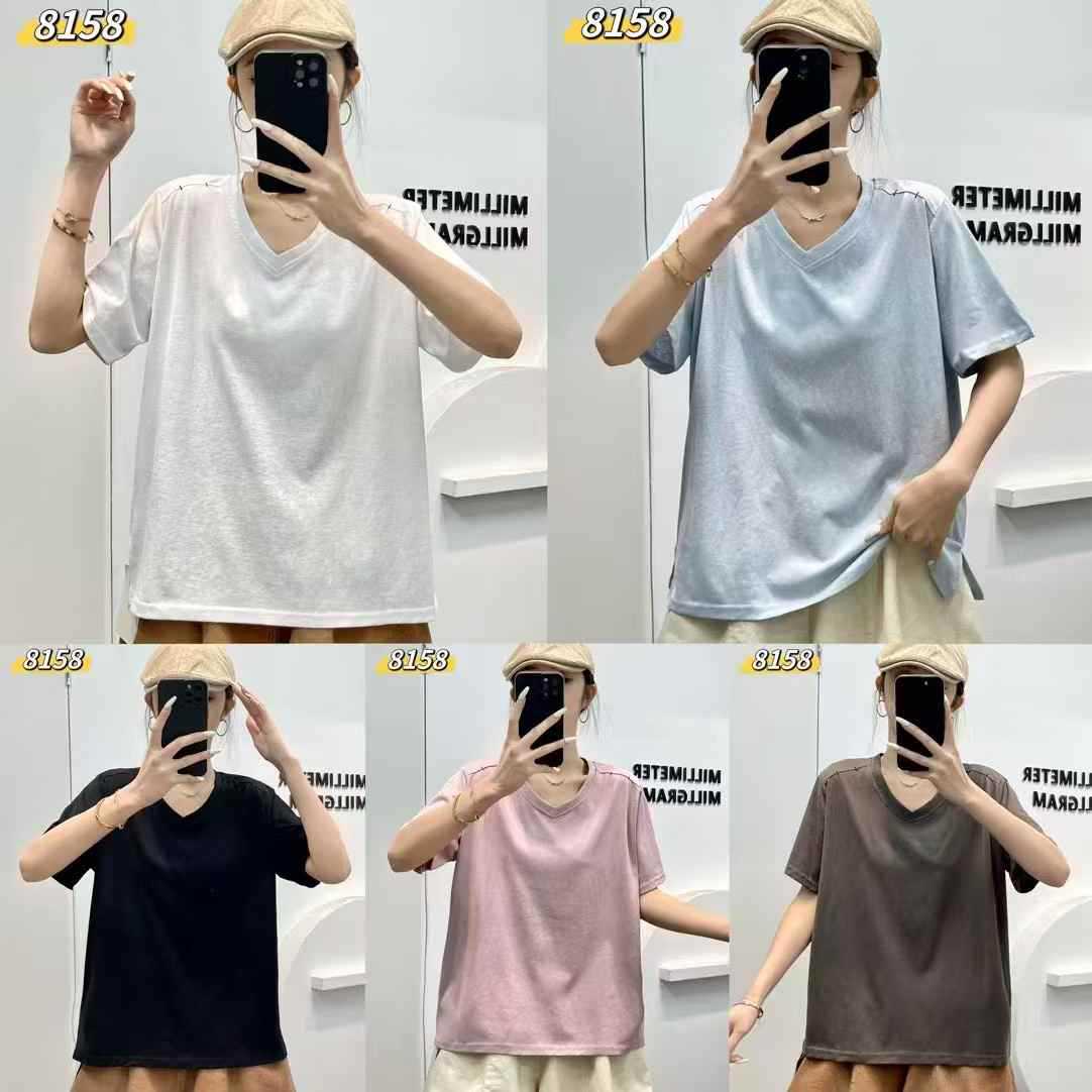 yl8158 シンプル韓国風ルーズスリムVネック無地万能半袖Tシャツ2025夏新作プルオーバートップス