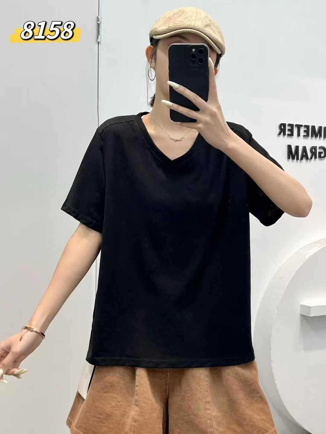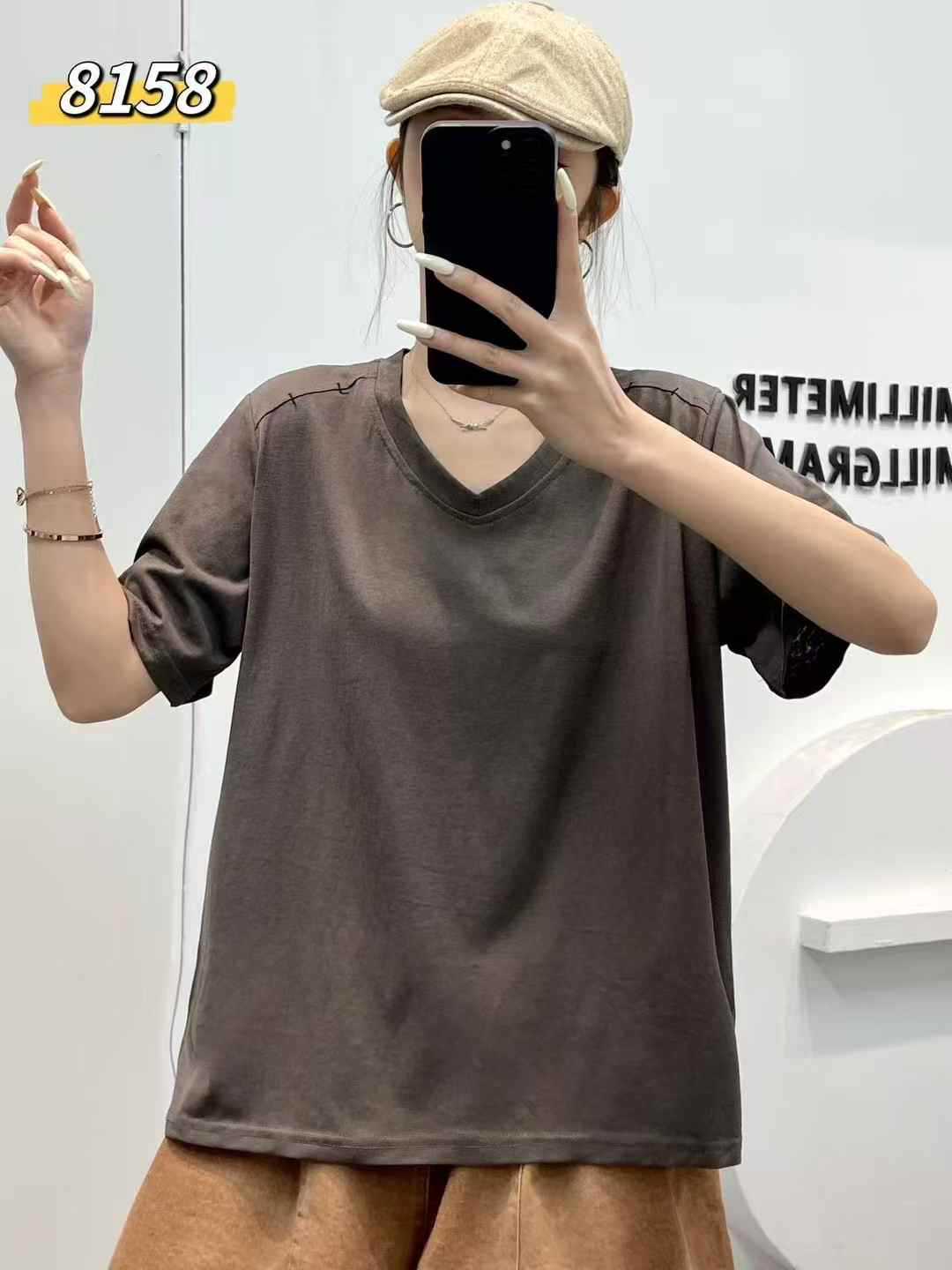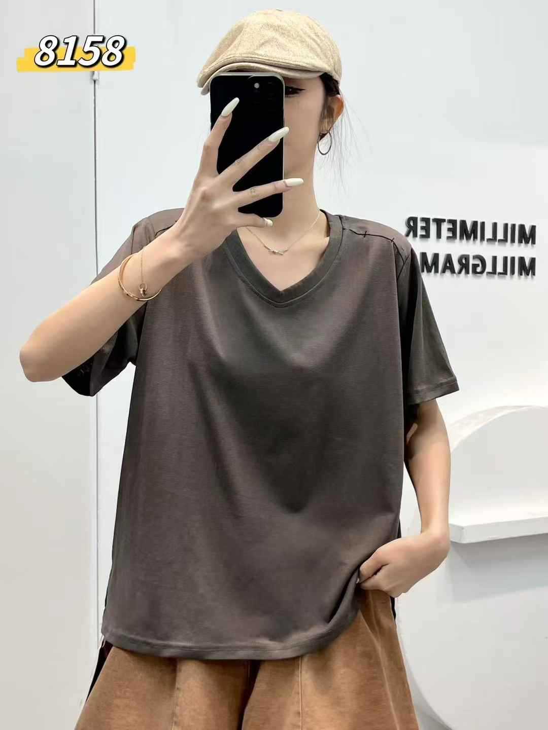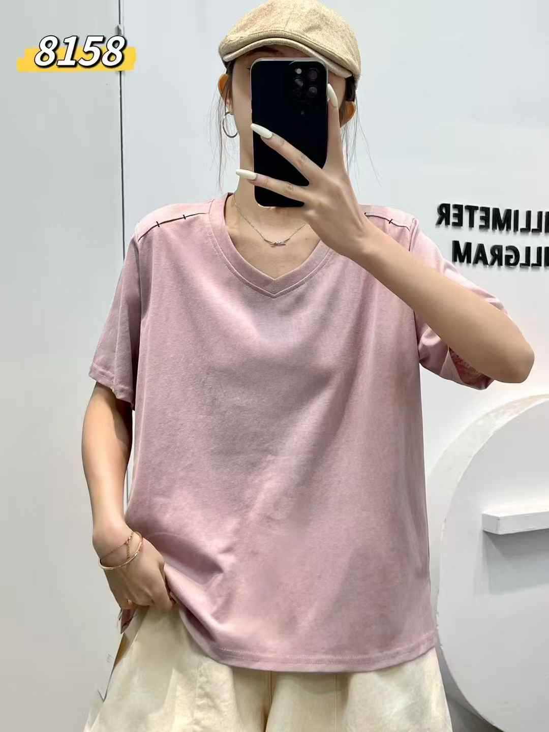 yl8158 シンプル韓国風ルーズスリムVネック無地万能半袖Tシャツ2025夏新作プルオーバートップス
