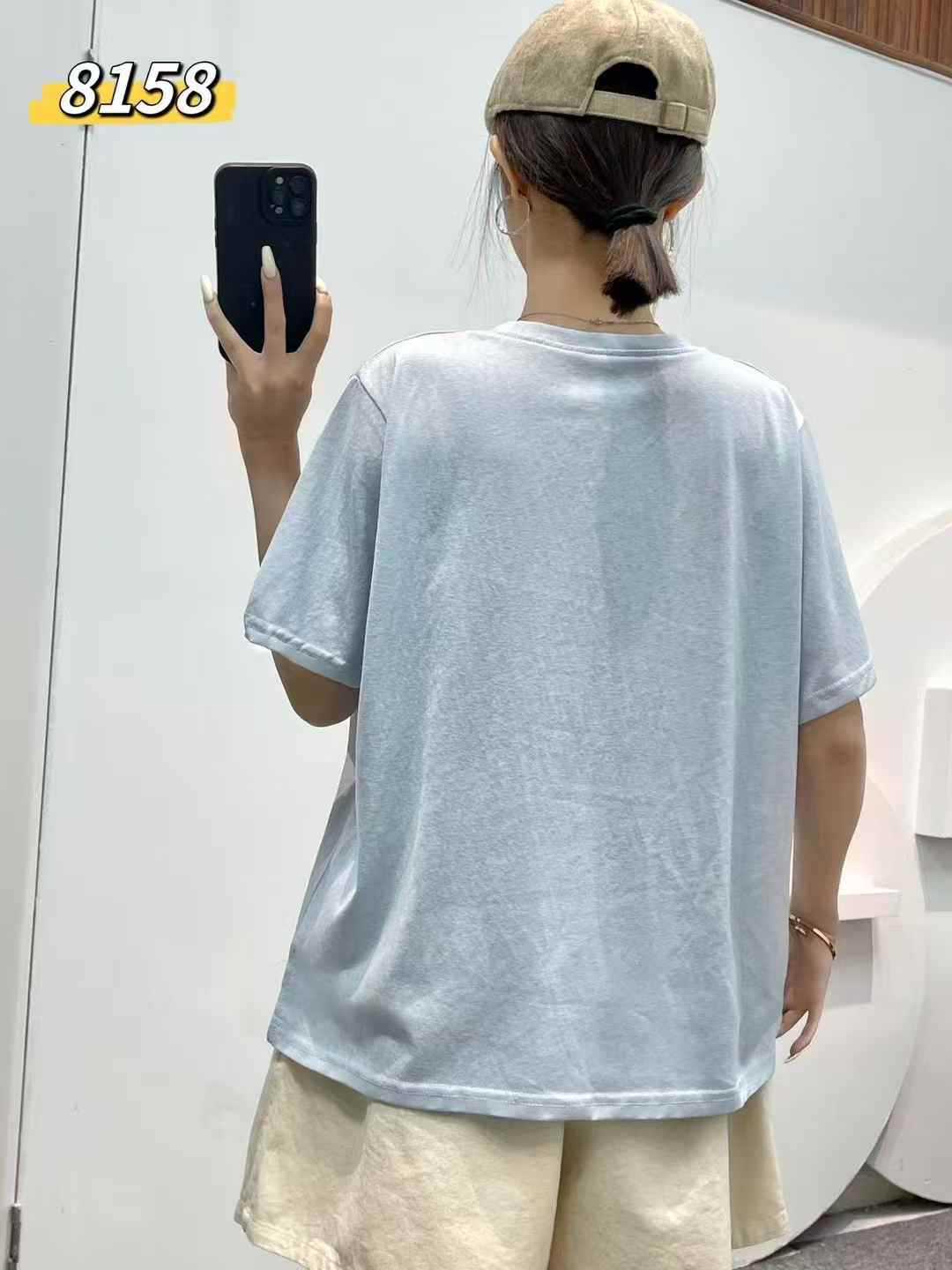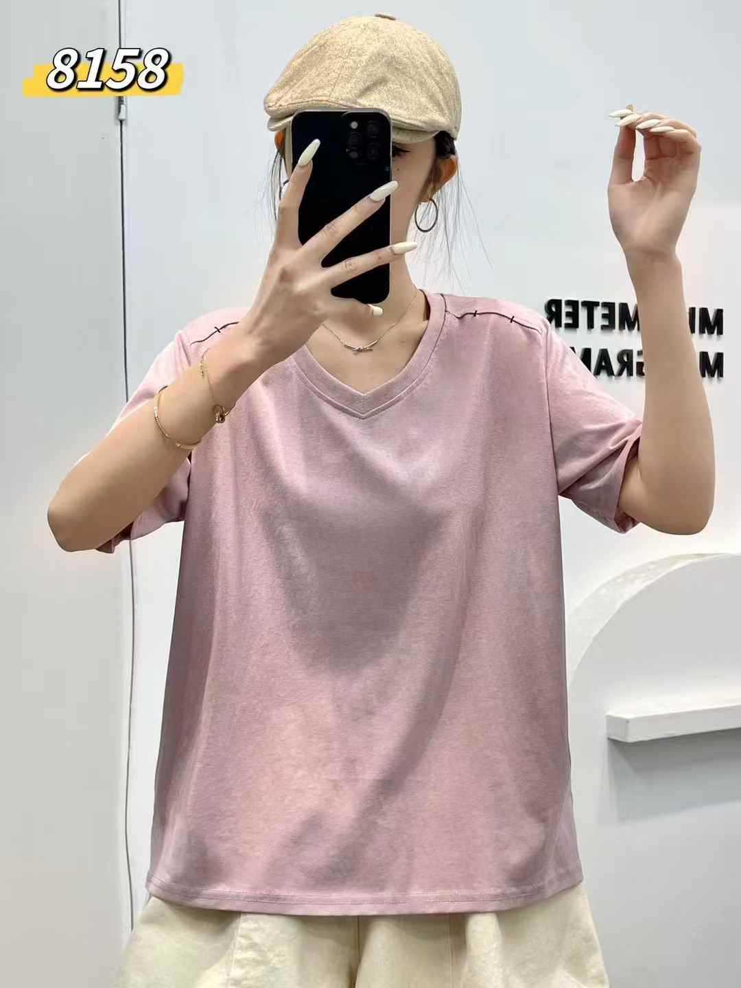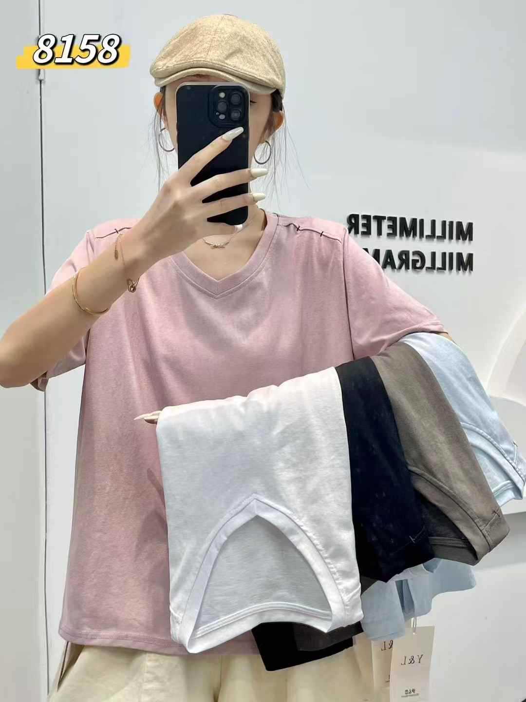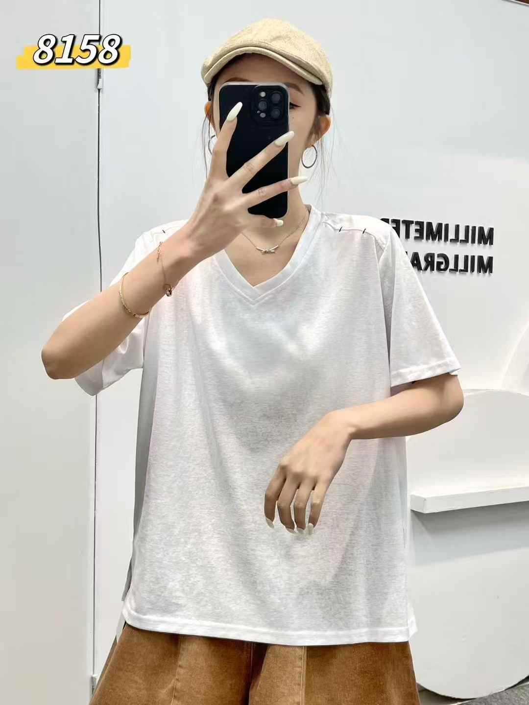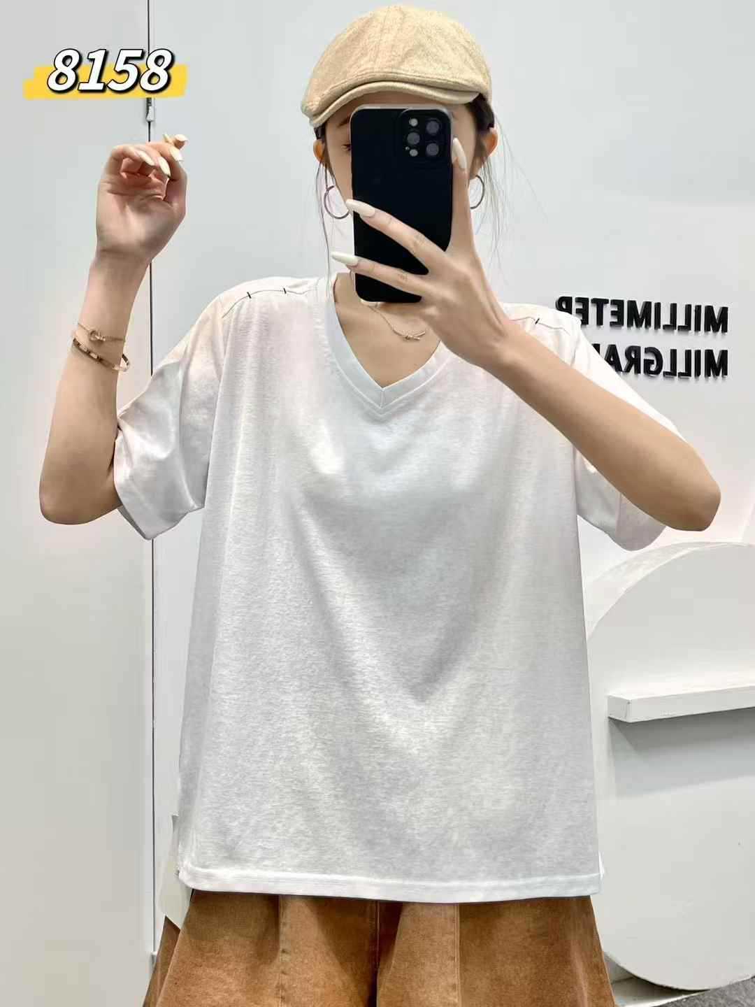 yl8158 シンプル韓国風ルーズスリムVネック無地万能半袖Tシャツ2025夏新作プルオーバートップス