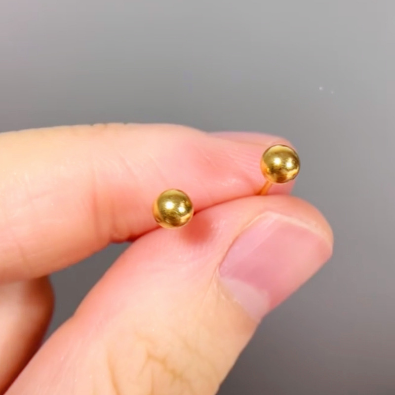 999足金包银圆珠耳钉简约豆豆光珠耳环时尚百搭养耳洞金包银首饰