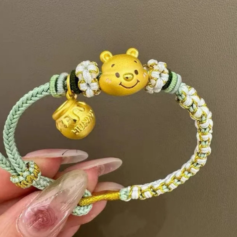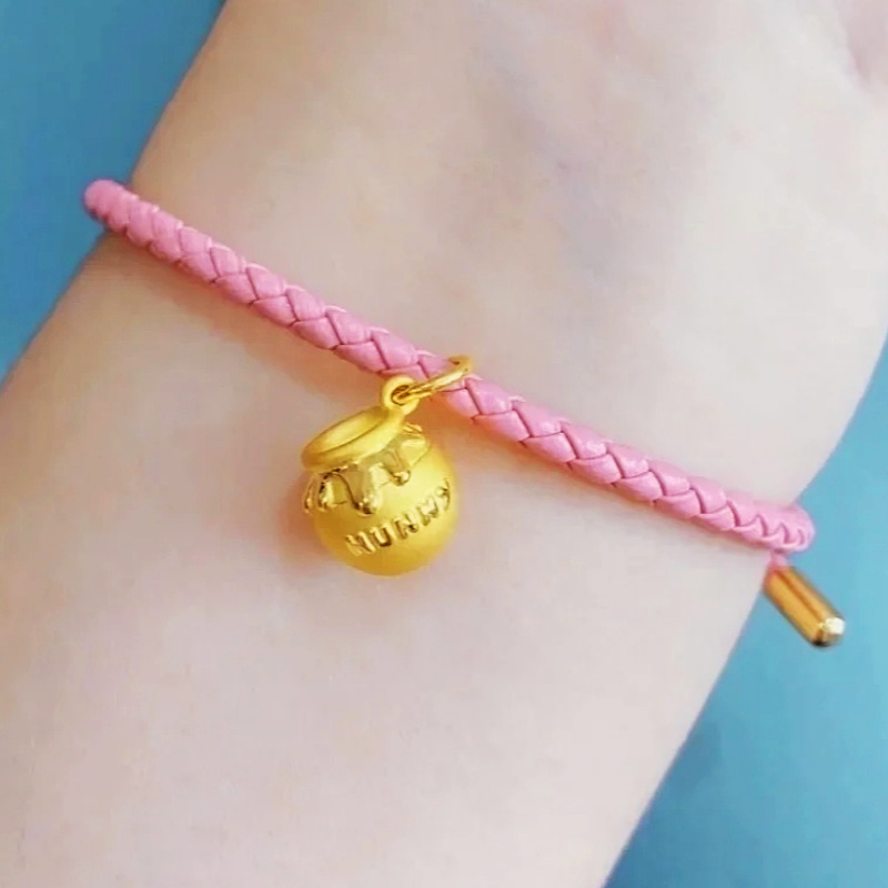 純金シルバーパッケージジュエリー ゴールド999ゴールド ハローキティ ブレスレット 猫頭リボン 転送ビーズ レザーロープ ギフト
