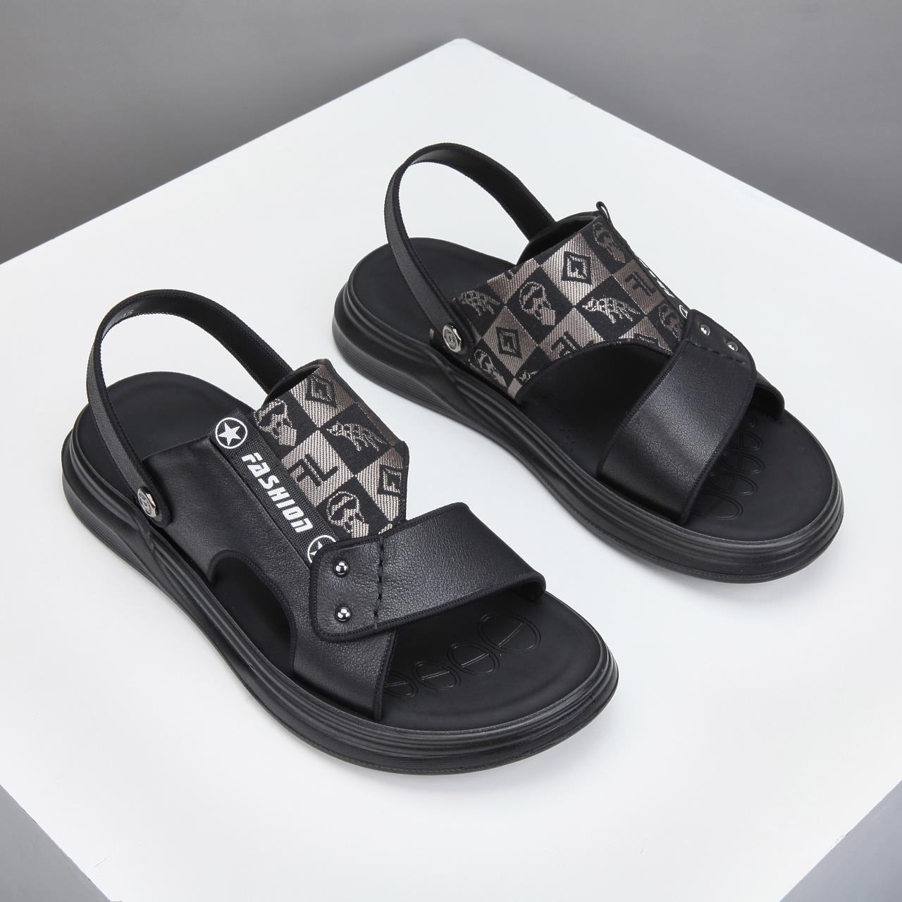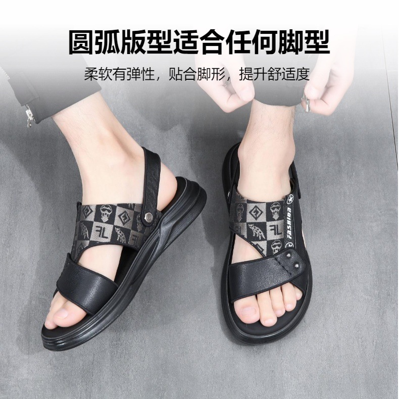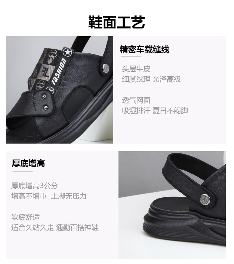 2025 夏の新スタイル牛革カジュアルアウトドアビーチシューズ増加厚底ノンスリップサンダル通勤サンダル男性