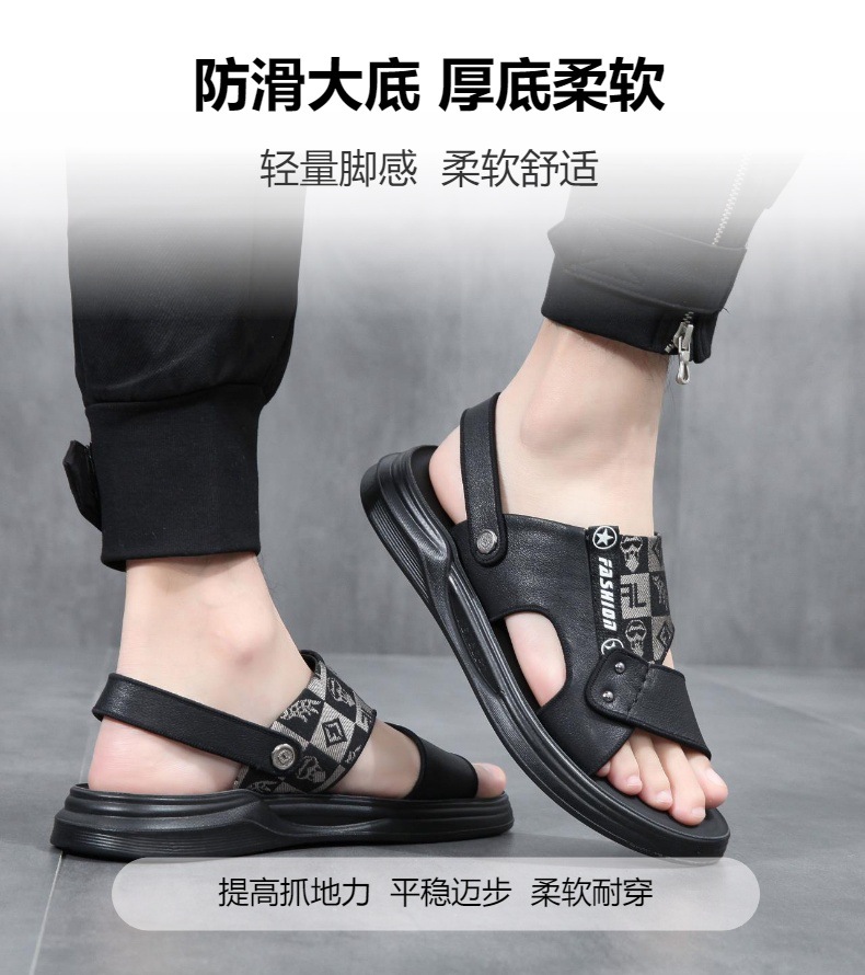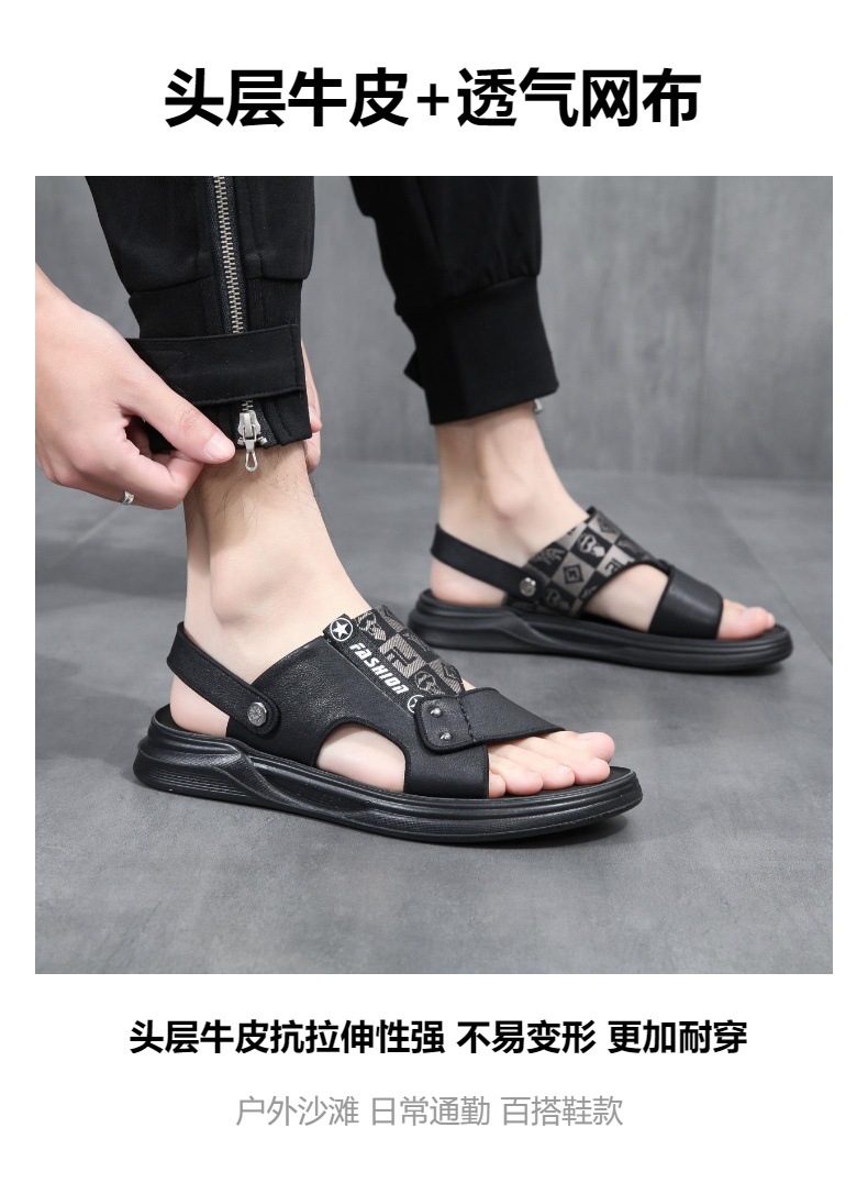 包頭アウトドアビーチシューズは柔らかく快適な2025年夏の新しい両用アウターウェアサンダル、第一層牛革滑り止め付き