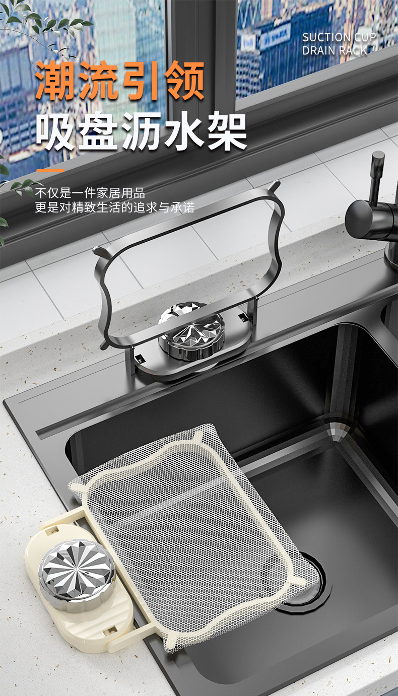 吸盘水槽过滤网架水池剩饭剩菜防堵置物架厨房洗碗池残渣漏网跨境
