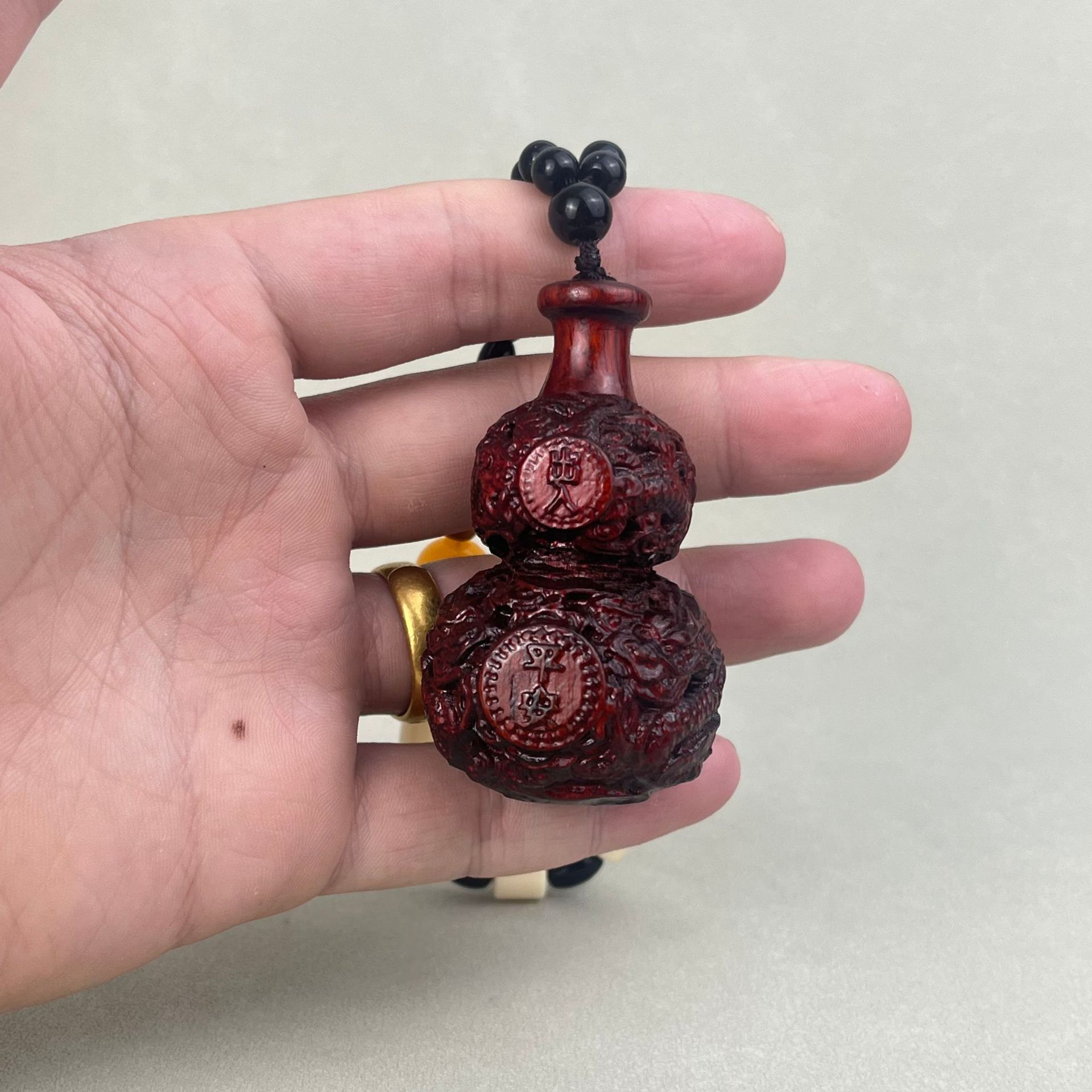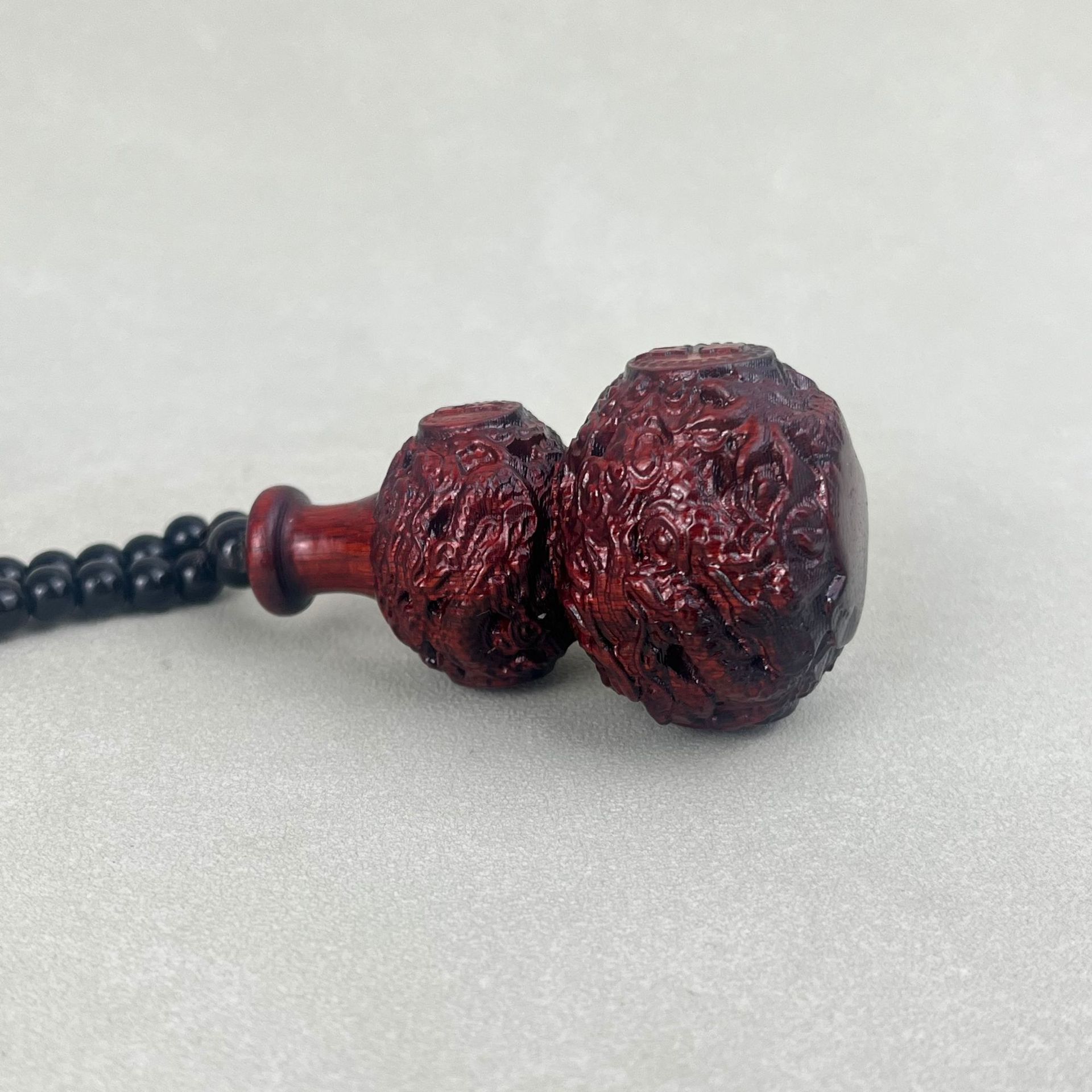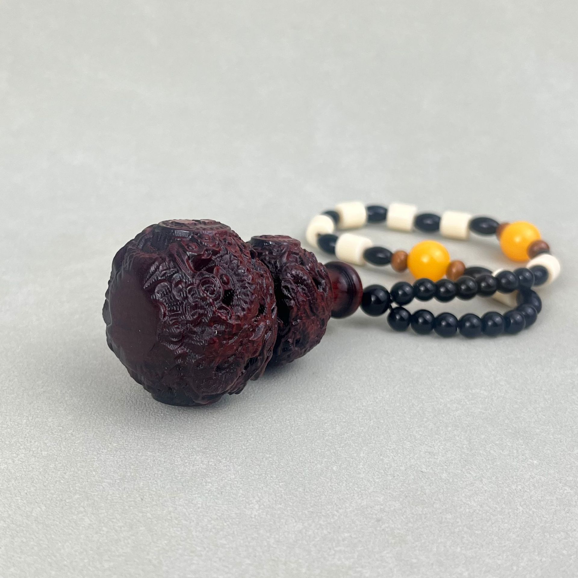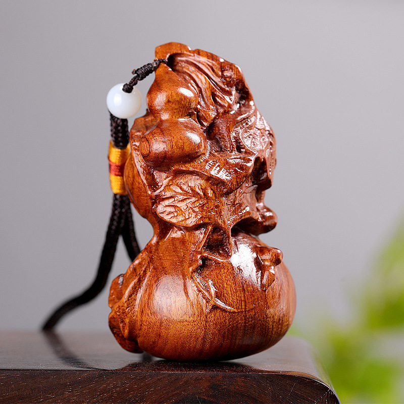 花梨の木の彫刻のヒョウタンの取っ手の件の木製のヒョウタンのストラップは文を飾って遊んでいます。