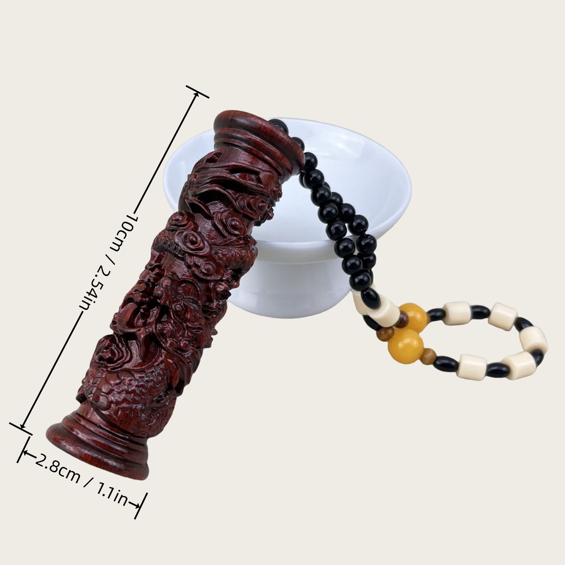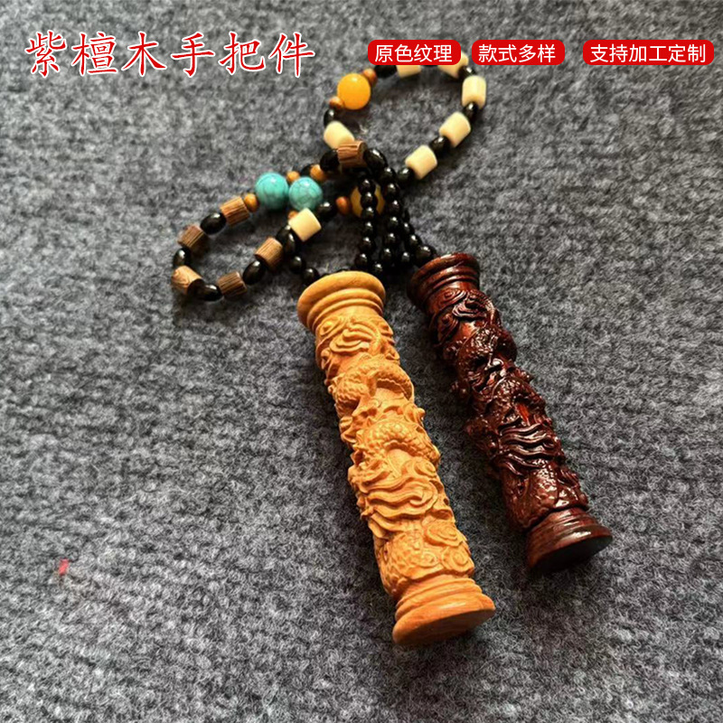 卸売彫刻されたドラゴンコラムペンダント、文具、ハンドルバーパーツ、装飾品、カーペンダント、シダーウッド、ローズウッドハンドルバーパーツ